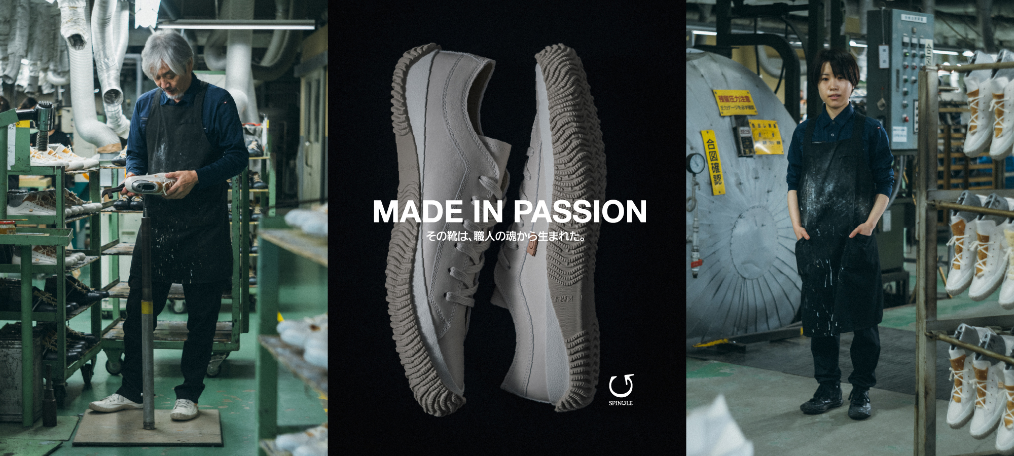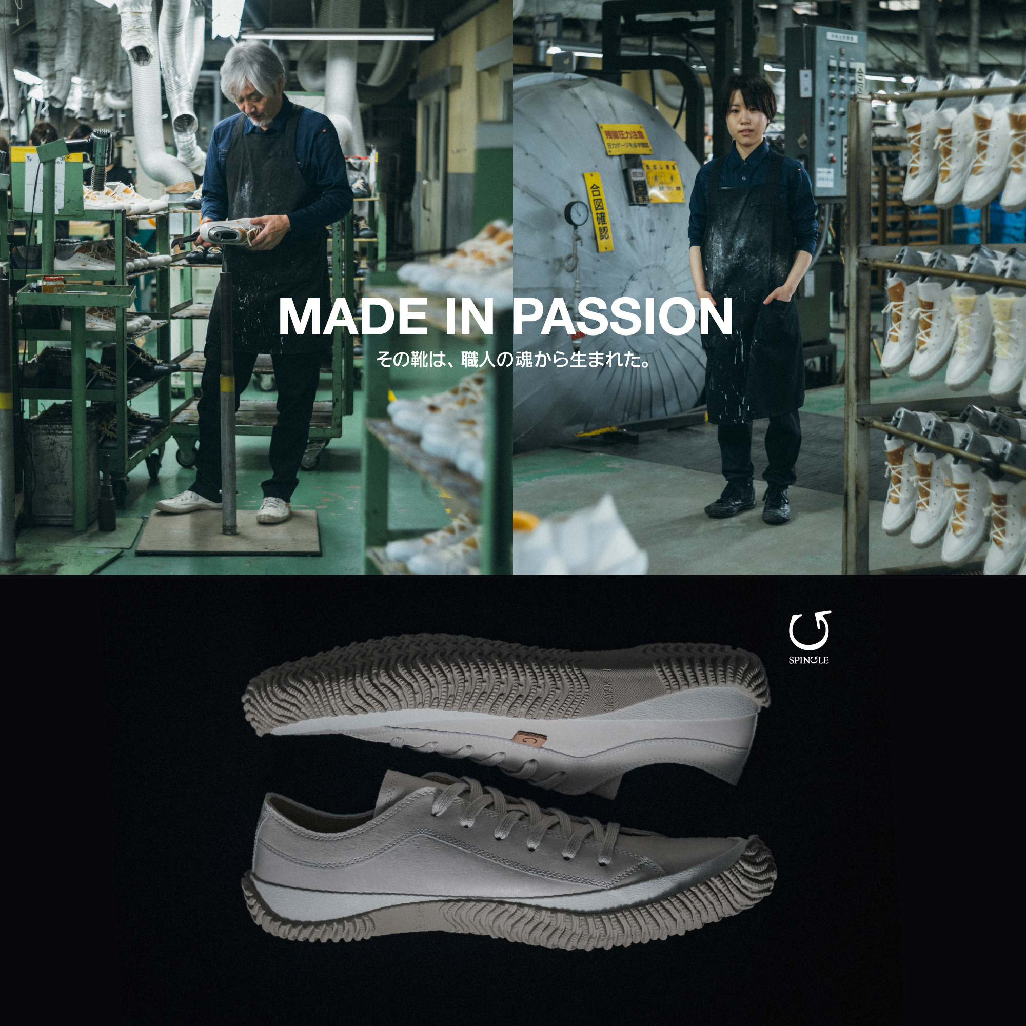 広島県府中市の90年以上の歴史ある工場で、職人が1足ずつ手掛けるスニーカー「SPINGLE(スピングル)」。