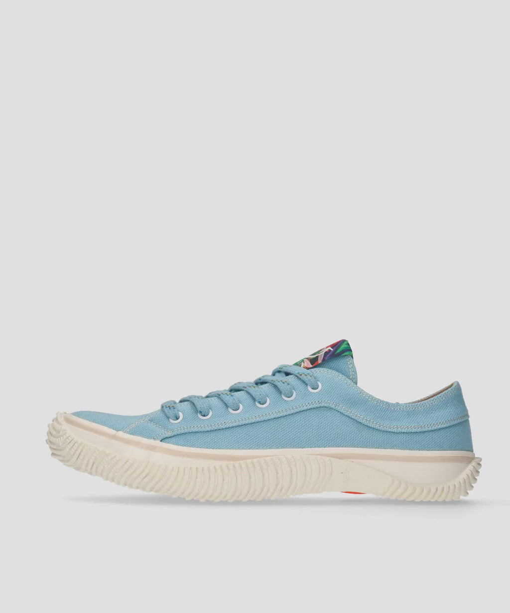 広島に寄贈され祈りの役目を終えた折り鶴から再生した糸を使い、オリジナルの帆布に仕立てアッパーに採用した特別な一足。折り鶴の紙から再生された糸「折り鶴レーヨン糸」は当初とても繊細な素材でした。開発当初はスニーカーの素材として採用することが極めて困難でしたが、綿糸と混紡することでスニーカーとして耐え得る強度を持ちあわせたキャンバス生地を目指し、1年以上の歳月をかけて生地メーカー様と協働開発、試行錯誤を繰り返し誕生に至りました。丈夫かつしなやか、綿帆布とは一味違った滑らかな肌触りのタッチで心地よいフィット感を生み出します。