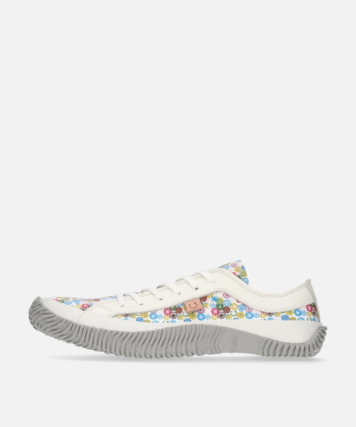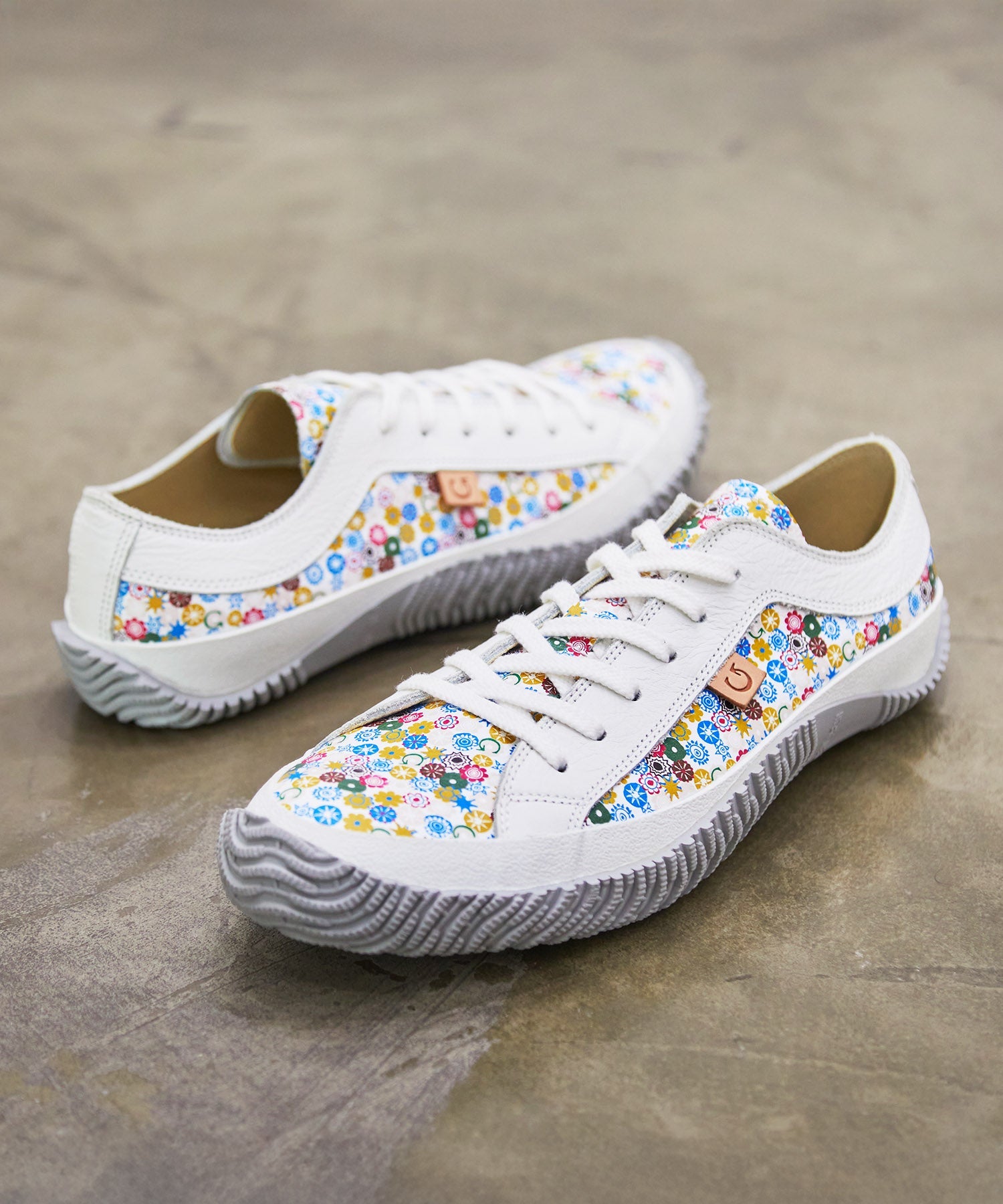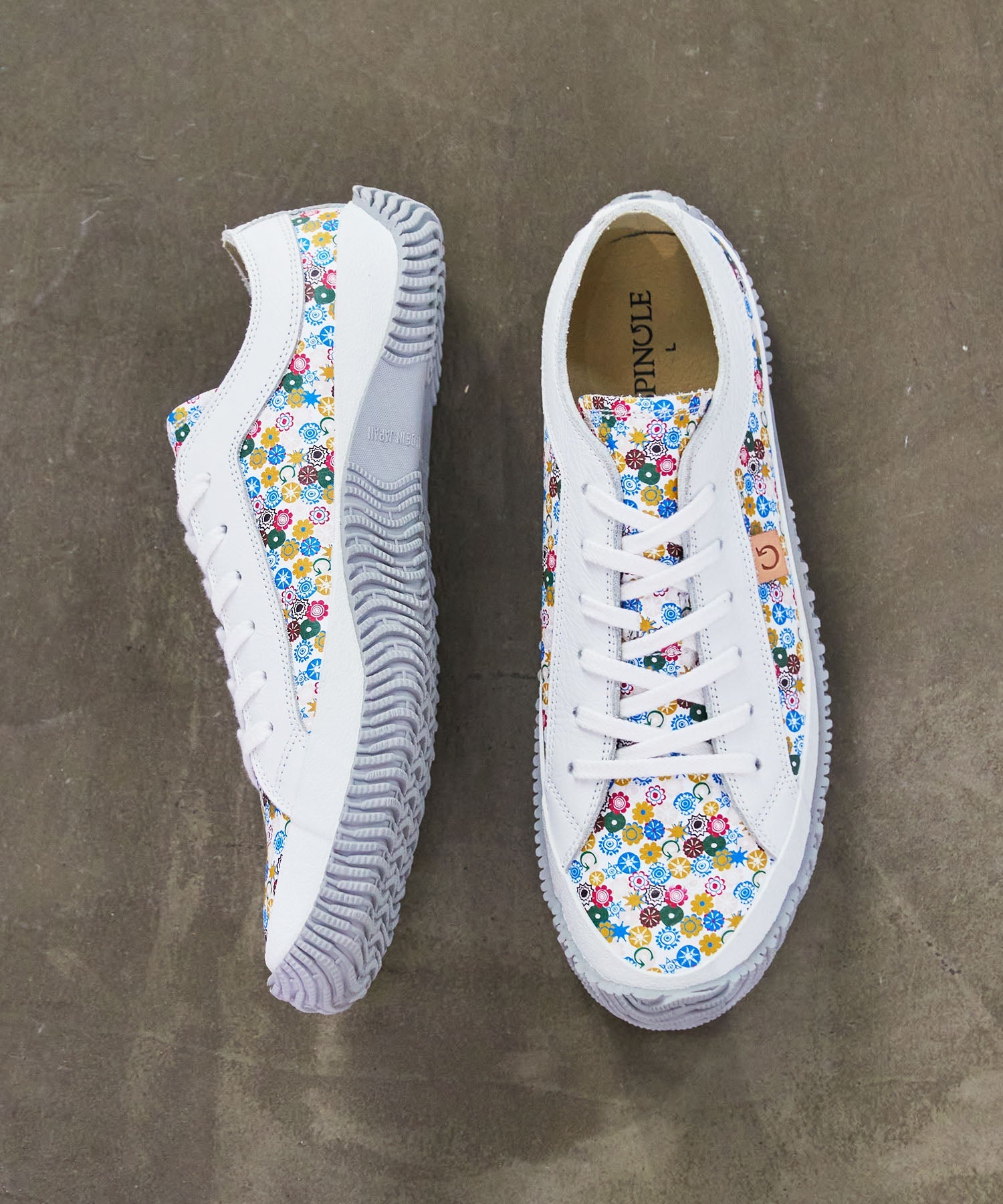 SP-1040は「Liberty」をイメージしたオリジナルフラワープリントのローカット。色彩が弾けるこのシーズン。陽気なムードを表現するフラワープリントを落ち着いたトーンで和らげる配色に仕上げました。履く人の気持ちまで明るくしてくれるカラーリングです。