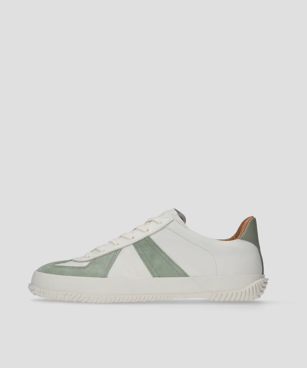 1970~90年代にドイツ軍のトレーニング用シューズとして採用されていた「ジャーマントレーナー」。そのクラシカルなスタイルをベースに、スピングルならではの上質な素材使いやアイコンのアウトソールを取り入れ、現代的に再構築しました。