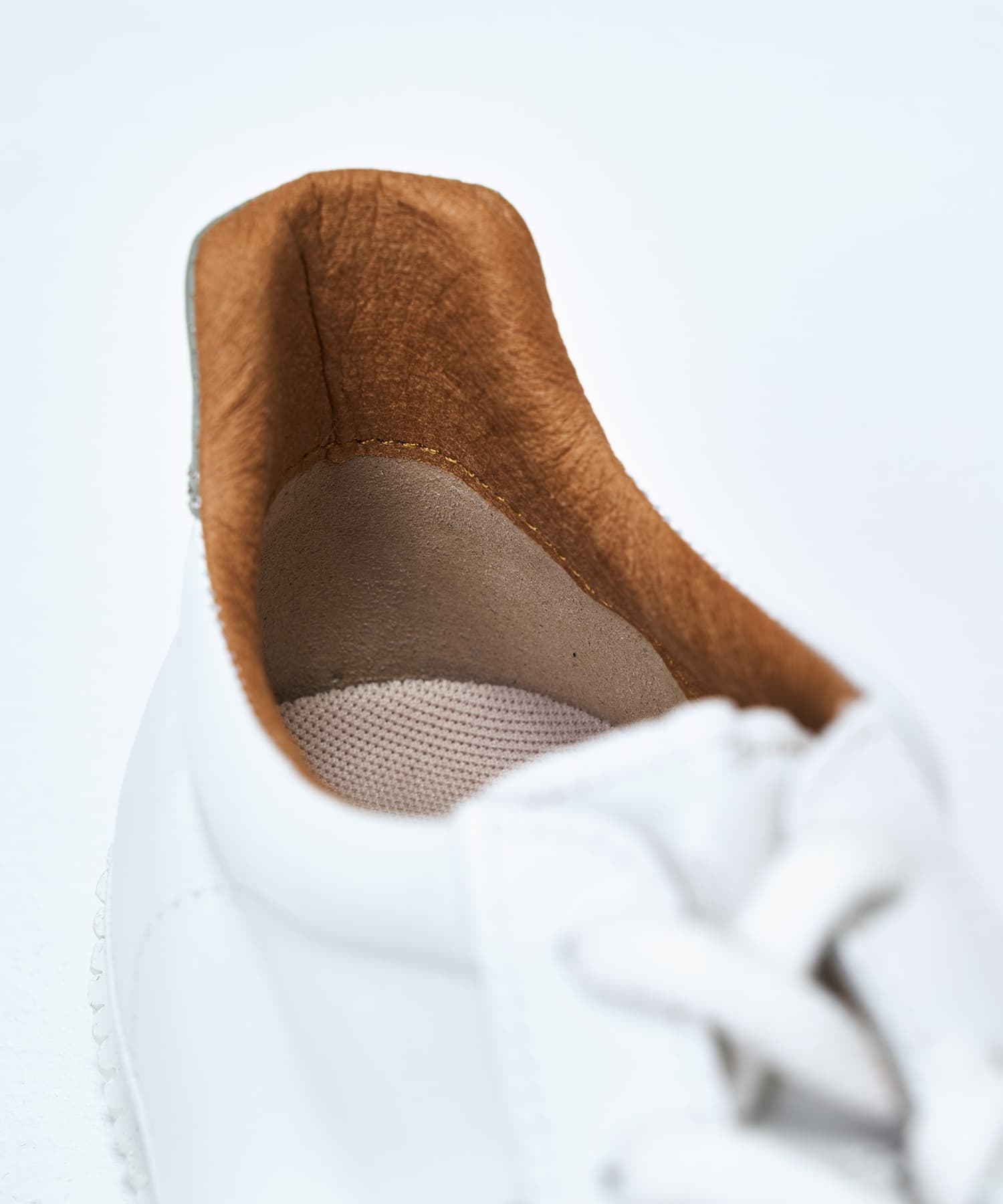 アッパーに用いているカンガルーレザーはサッカーや野球のスパイクにも使用されるほど柔らかく、軽く、丈夫なレザー。さらに、履き口やベロにはパッドを内蔵し、足当たりがやさしく快適になるように仕上げています。
