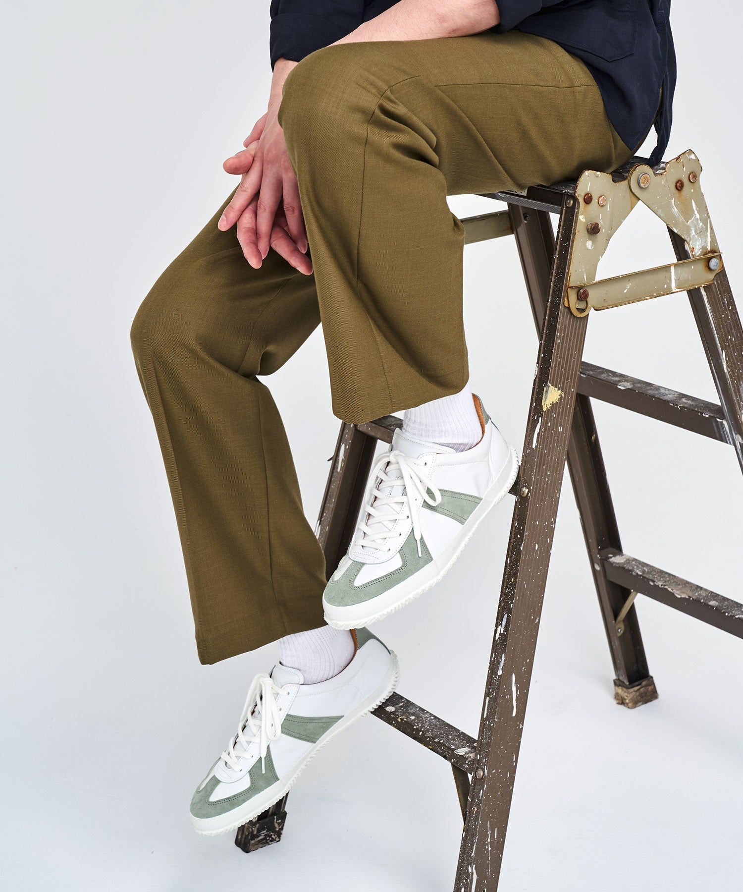 往年のミリタリースニーカー「ジャーマントレーナー」をモチーフにしたローカットモデル。ジャーマントレーナーとは、1970~90年代にドイツ軍で軍用トレーニングシューズとして採用されていたスニーカーの復刻版のこと。現在はローテクスニーカーの定番として有名ブランドや各セレクトショップでも取り扱われるクラシックスニーカーです。柔らかなカンガルーレザーと牛スエードのコンビネーションはシンプルで洗練された印象で、時代を超えて愛される普遍的なデザインが魅力。オーセンティックな雰囲気はそのままに、ミニマルな巻き上げソールでスピングルらしさも注入した一足。