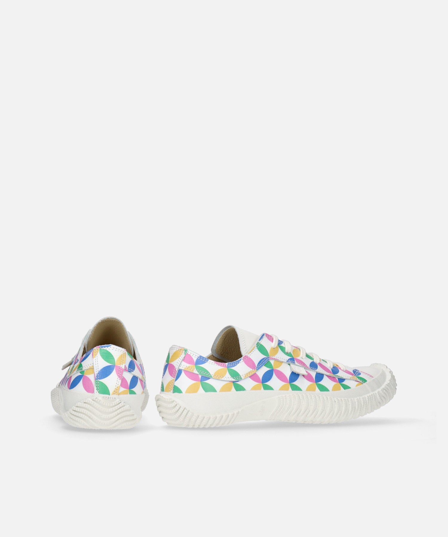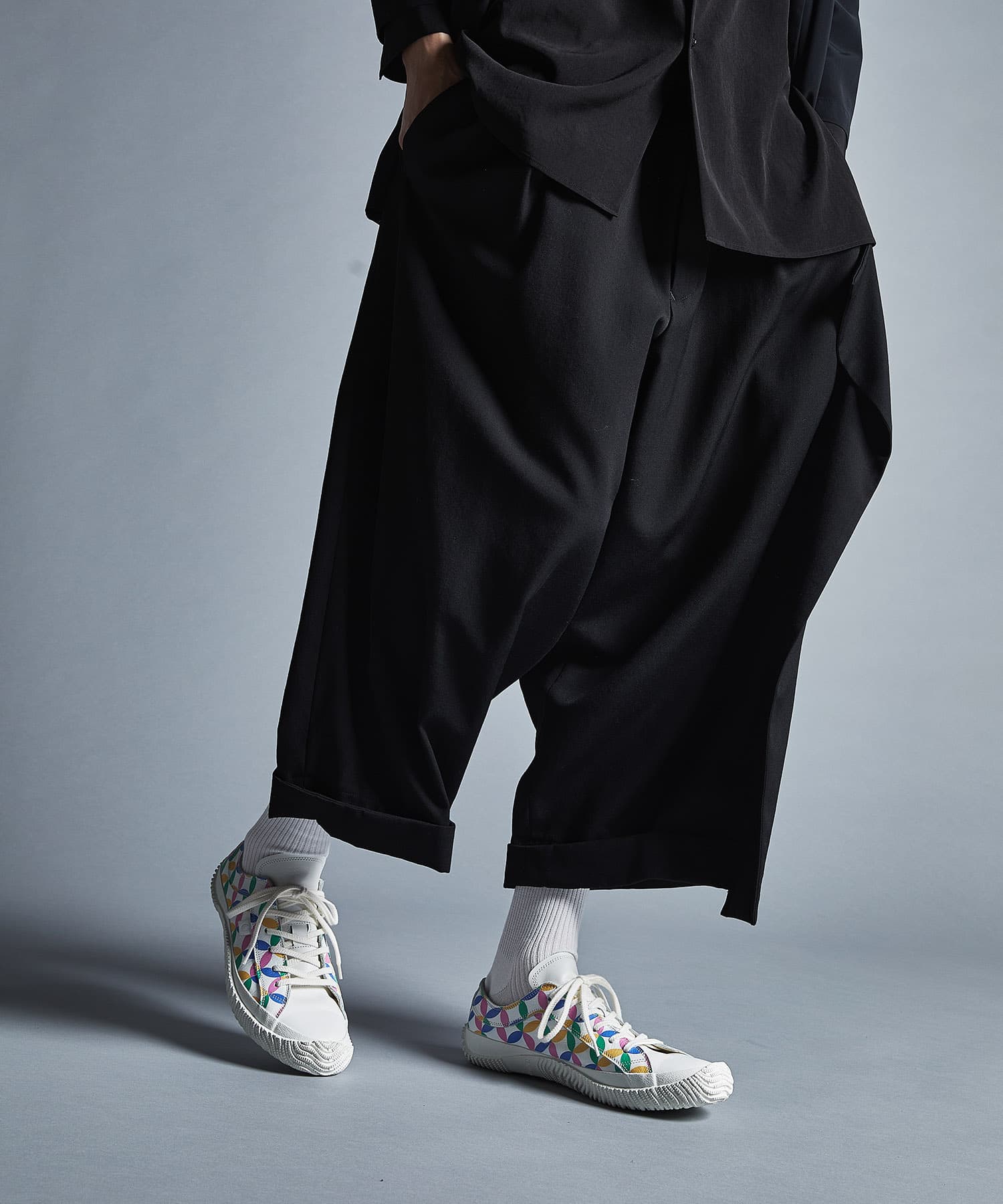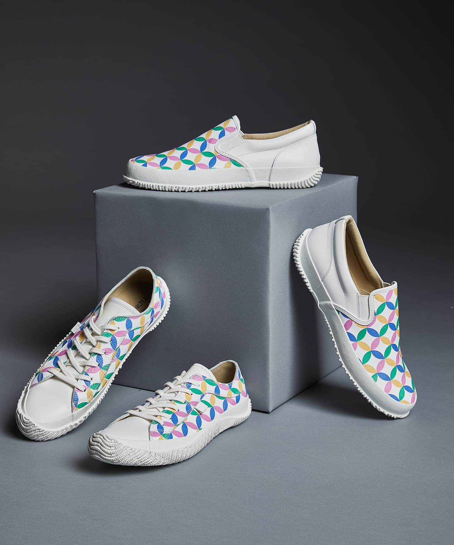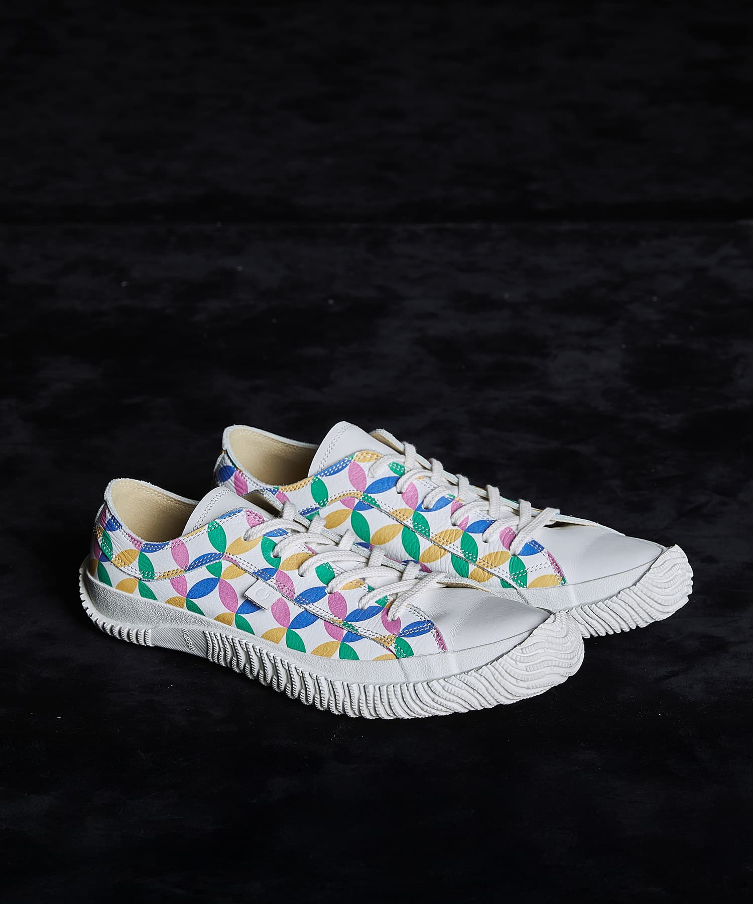 オリジナル七宝柄のプリントレザーを使用したローカット。円形が連鎖し繋がる七宝柄には、「円満」「調和」「ご縁」などの意味があり、大変縁起の良い柄とされています。2025年シーズンテーマ「Circle」のもと、日本の美を提唱する「Japan Beauty」を表現した一足。伝統と現代が融合したラグジュアリーな雰囲気、カラフルに彩られた七宝柄がキャッチーでピースフルな足元を演出します。
