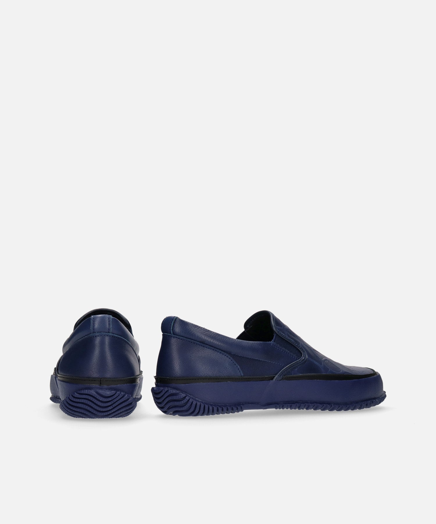 牛革をインディゴ染めしたスリッポン