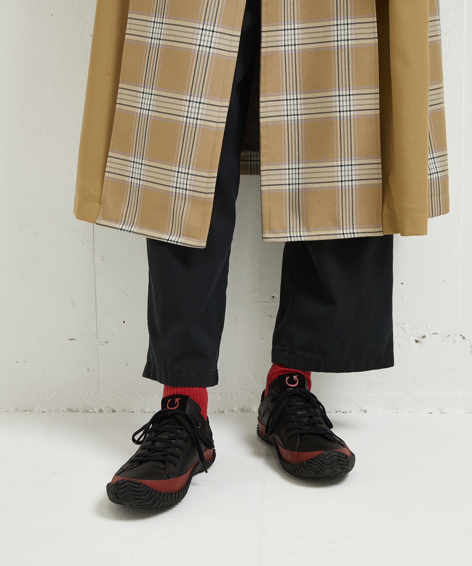牛ベロアのタンにスピングルロゴが入ったローカット。タンと同素材の踵飾りや爽やかなサイドパンチングがアクセントになっています。