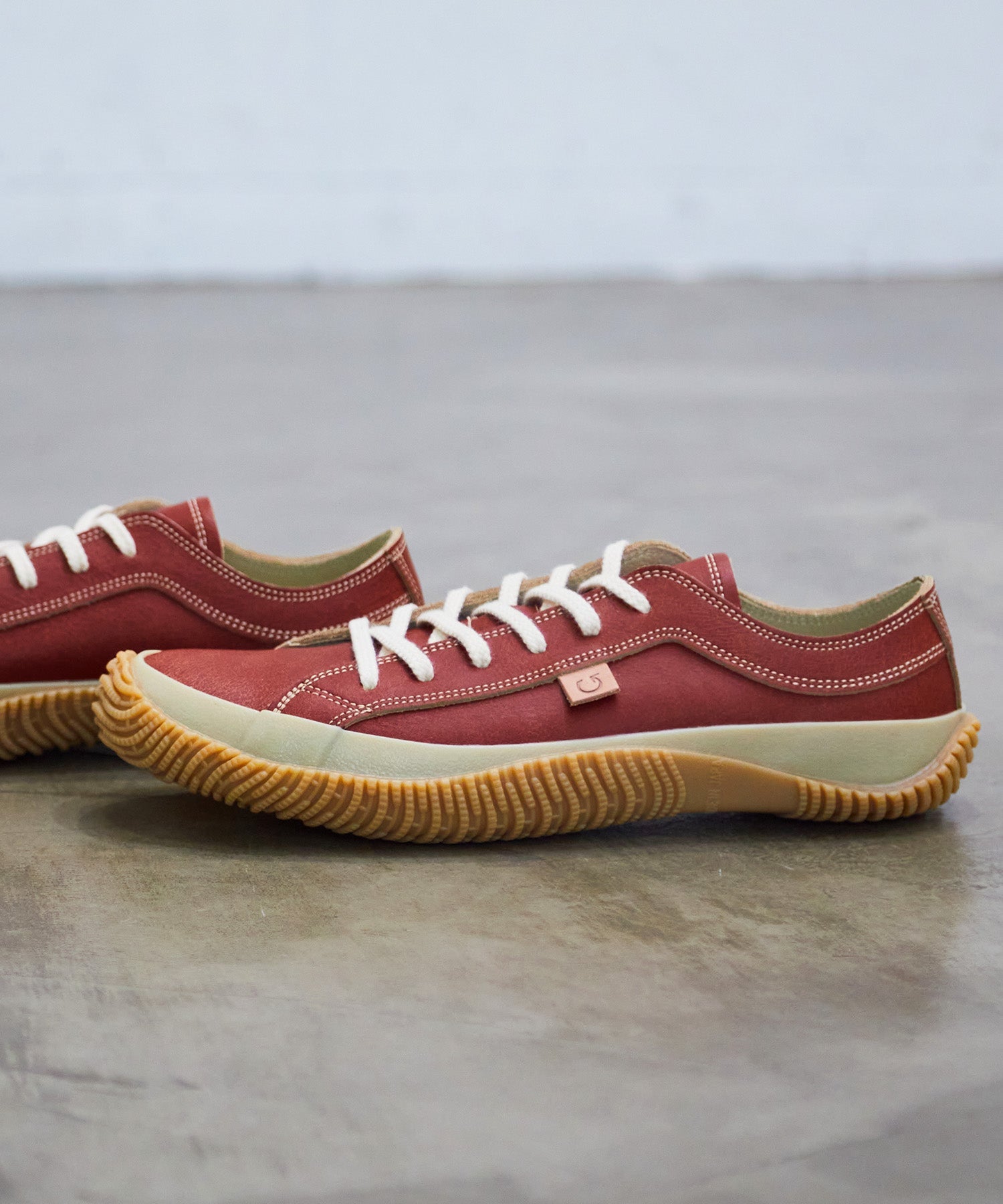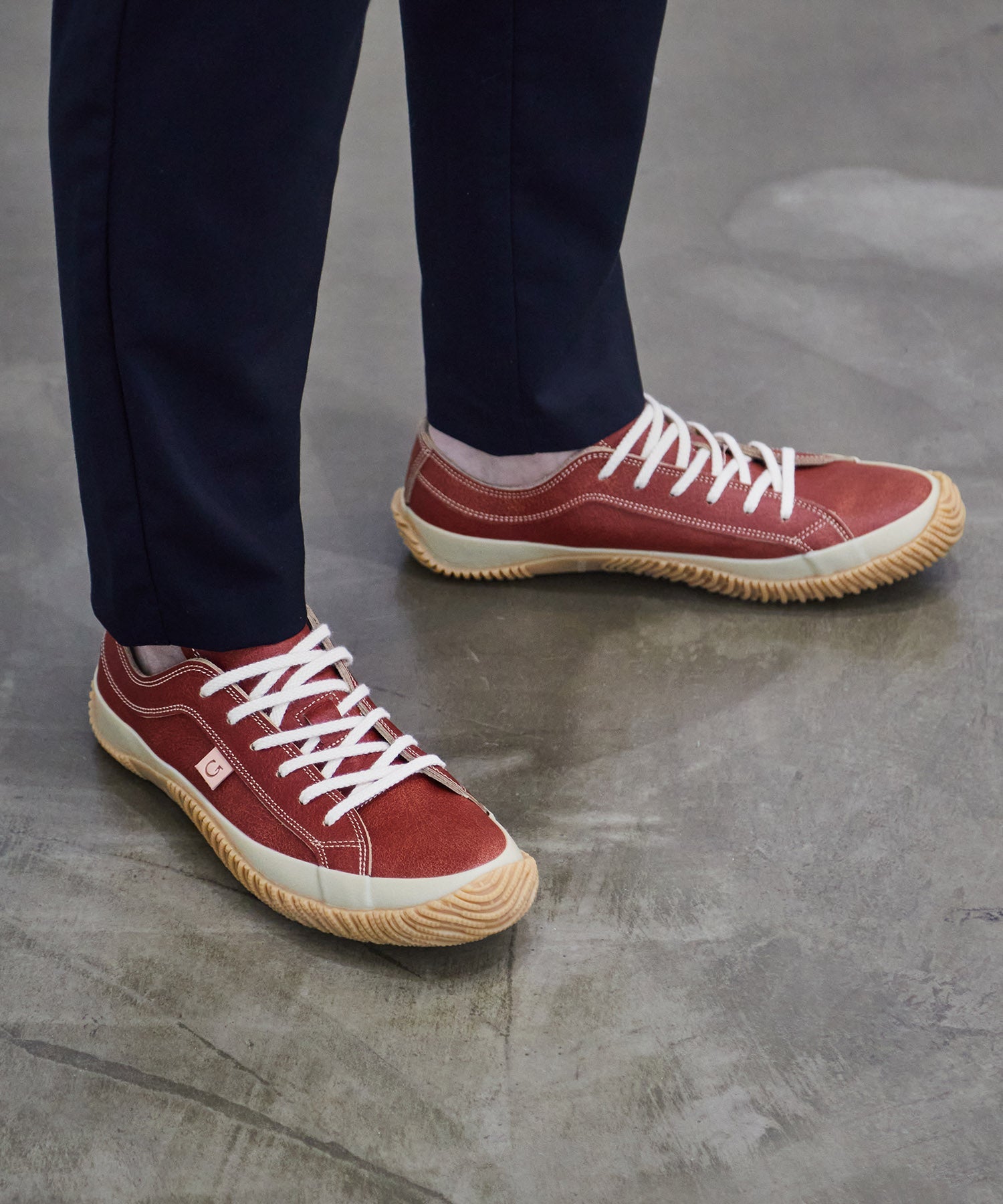 クラッキング(ひび割れ加工)レザーを使用したローカットモデル。ヴィンテージ感溢れる一足です。