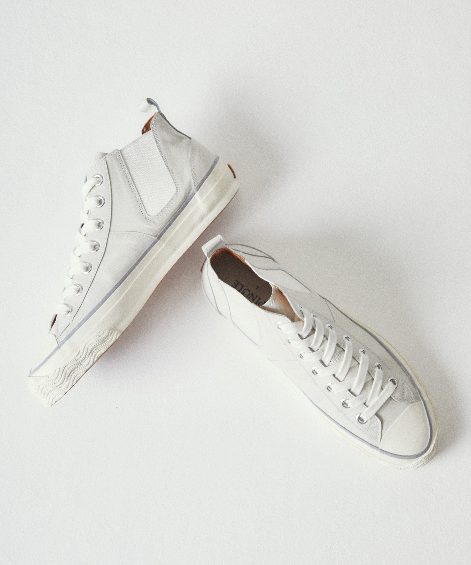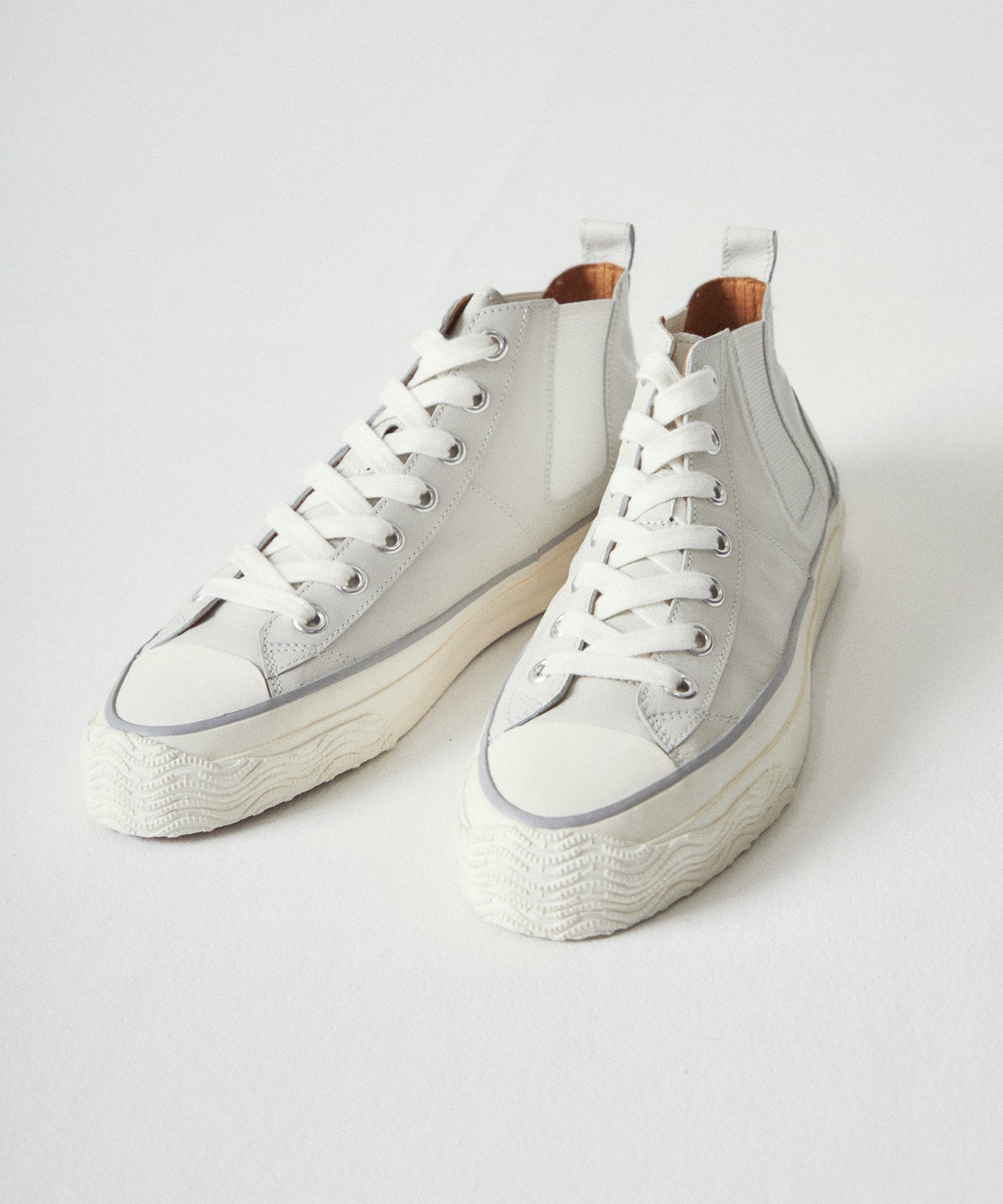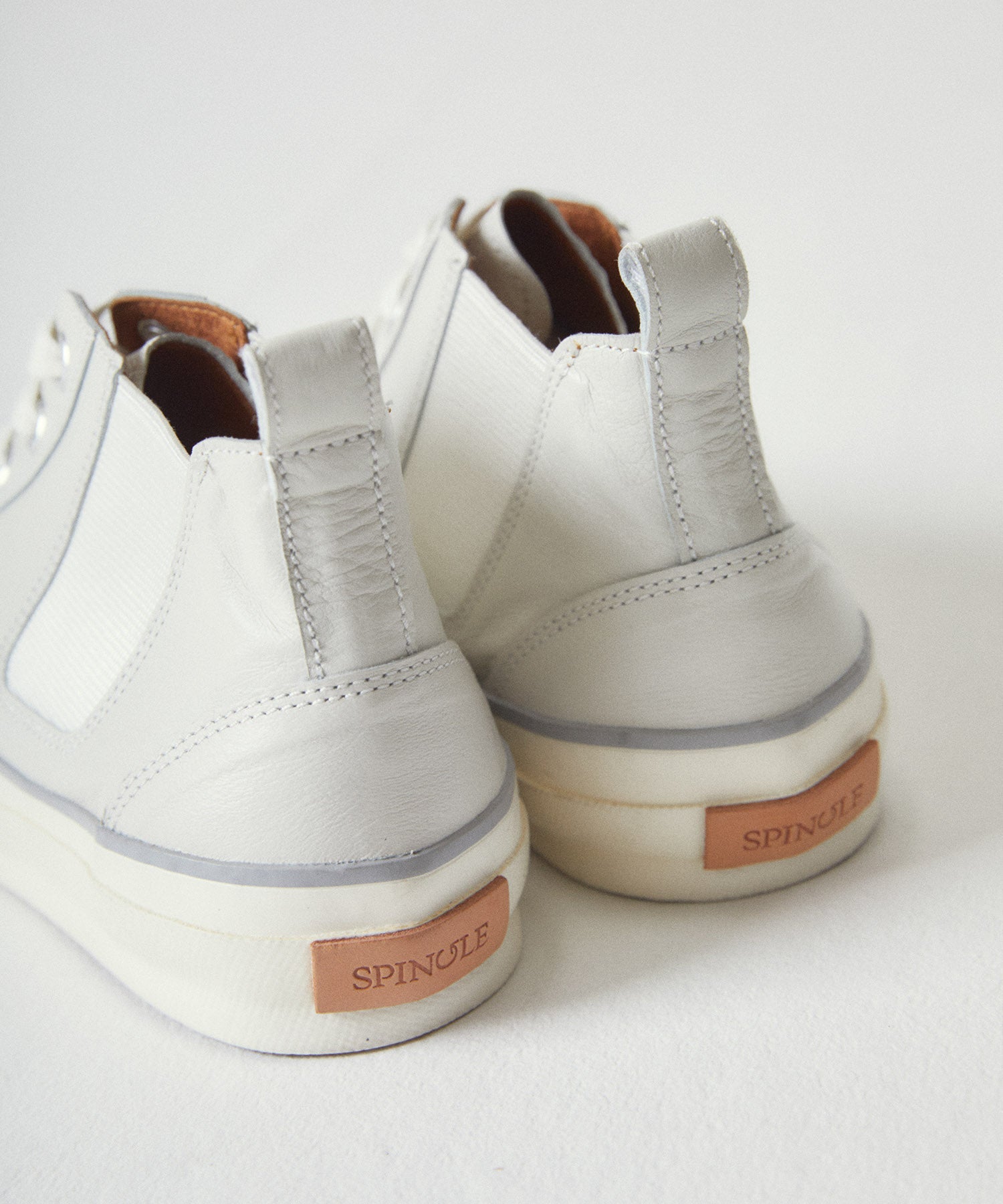 風合いあるカンガルーレザーのアッパー、巻き上げソールをイメージしたトゥーガード、SP-110のステッチワークなど、スピングルの代名詞を詰め込んだサイドゴアハイカット。柔らかなカンガルーレザーと伸縮するサイドゴアで脱ぎ履きがしやすく、足首周りに程よくフィット。ヌメ革のヒールパッチにはロゴが入り、後ろ姿のアクセントに。ソールには当社ソールブランド「RUBEAR」のNRソールを採用し、天然ラバーの柔らかさとしなやかさはそのままに弾力性と耐摩耗性を向上させました。