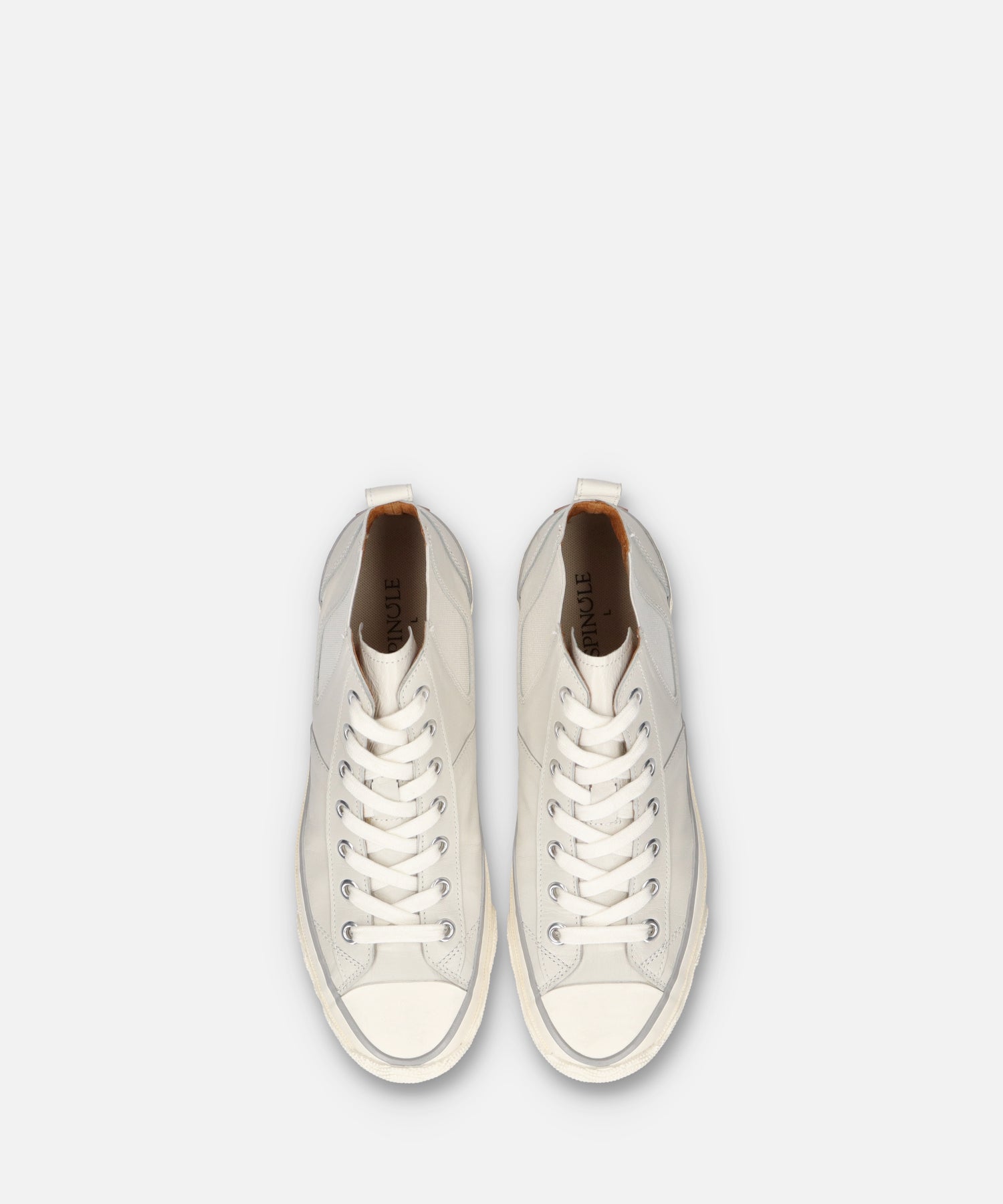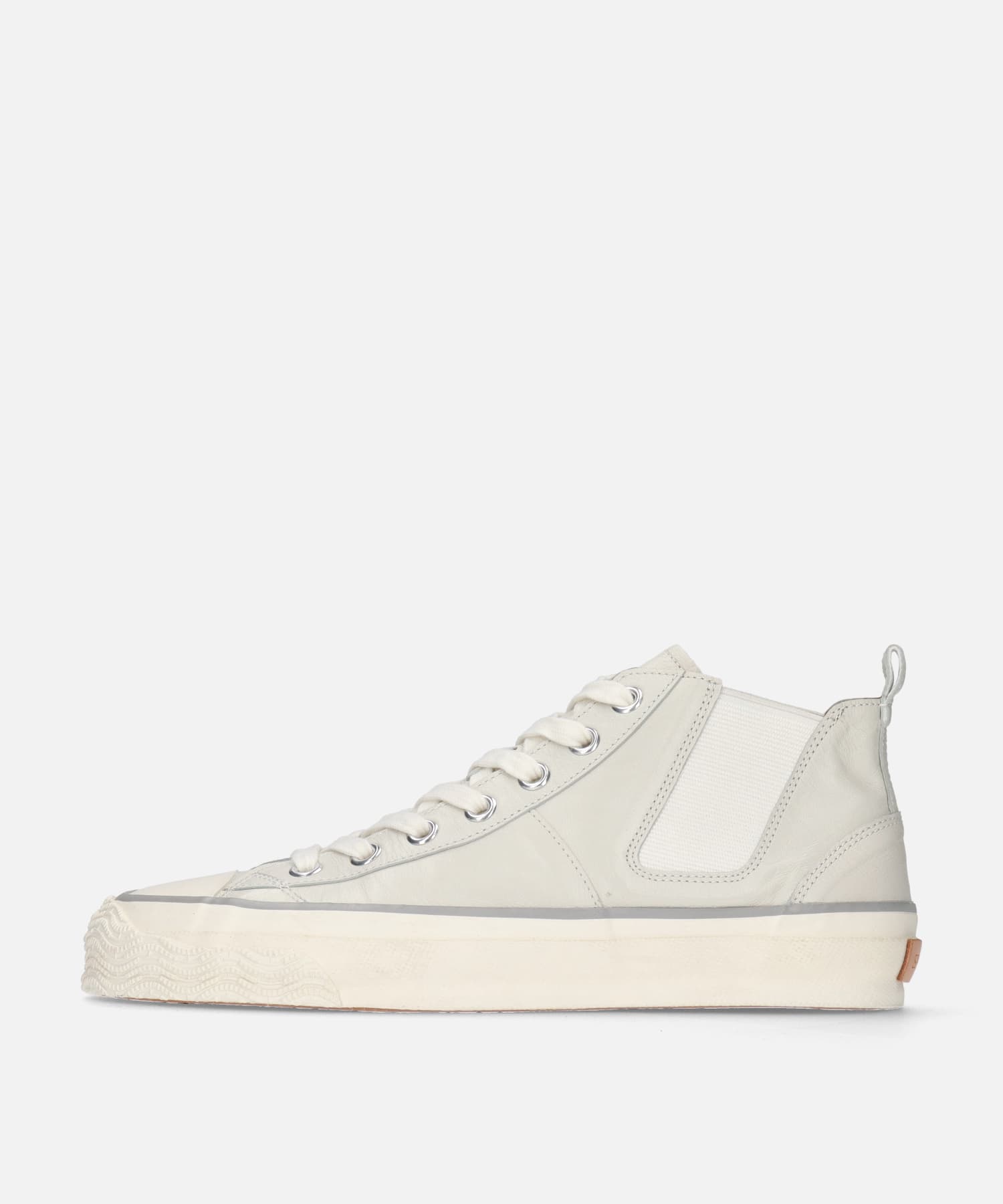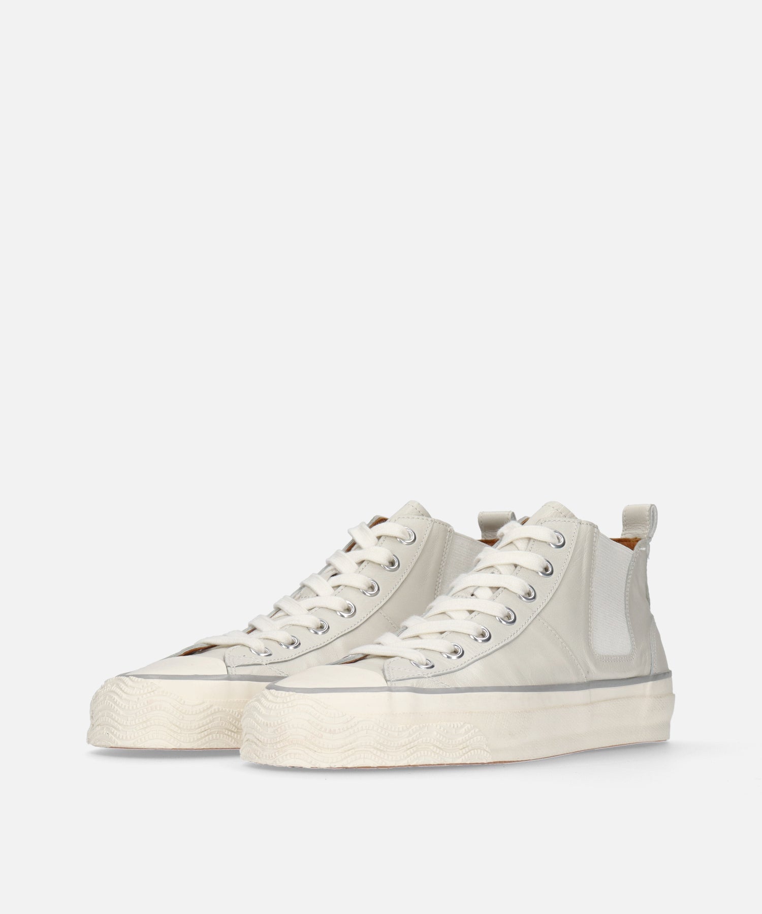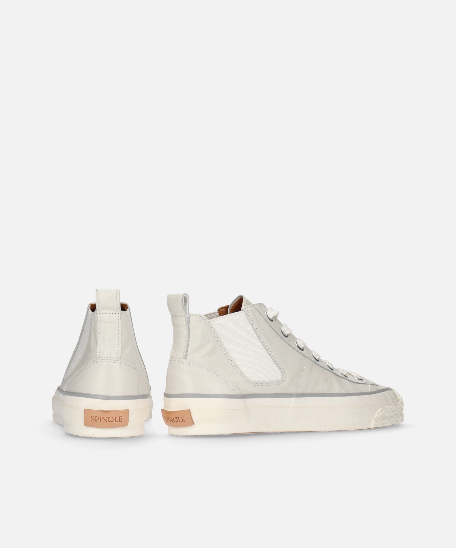 風合いあるカンガルーレザーのアッパー、巻き上げソールをイメージしたトゥーガード、SP-110のステッチワークなど、スピングルの代名詞を詰め込んだサイドゴアハイカット。柔らかなカンガルーレザーと伸縮するサイドゴアで脱ぎ履きがしやすく、足首周りに程よくフィット。ヌメ革のヒールパッチにはロゴが入り、後ろ姿のアクセントに。ソールには当社ソールブランド「RUBEAR」のNRソールを採用し、天然ラバーの柔らかさとしなやかさはそのままに弾力性と耐摩耗性を向上させました。