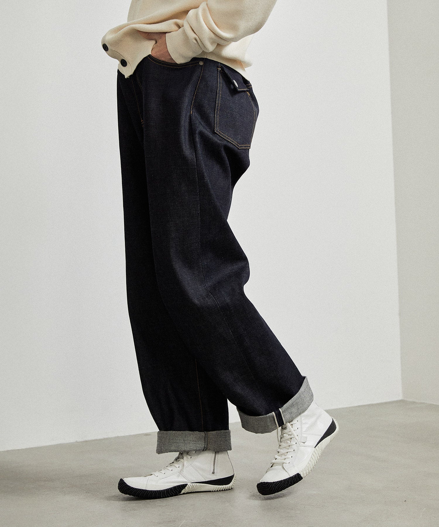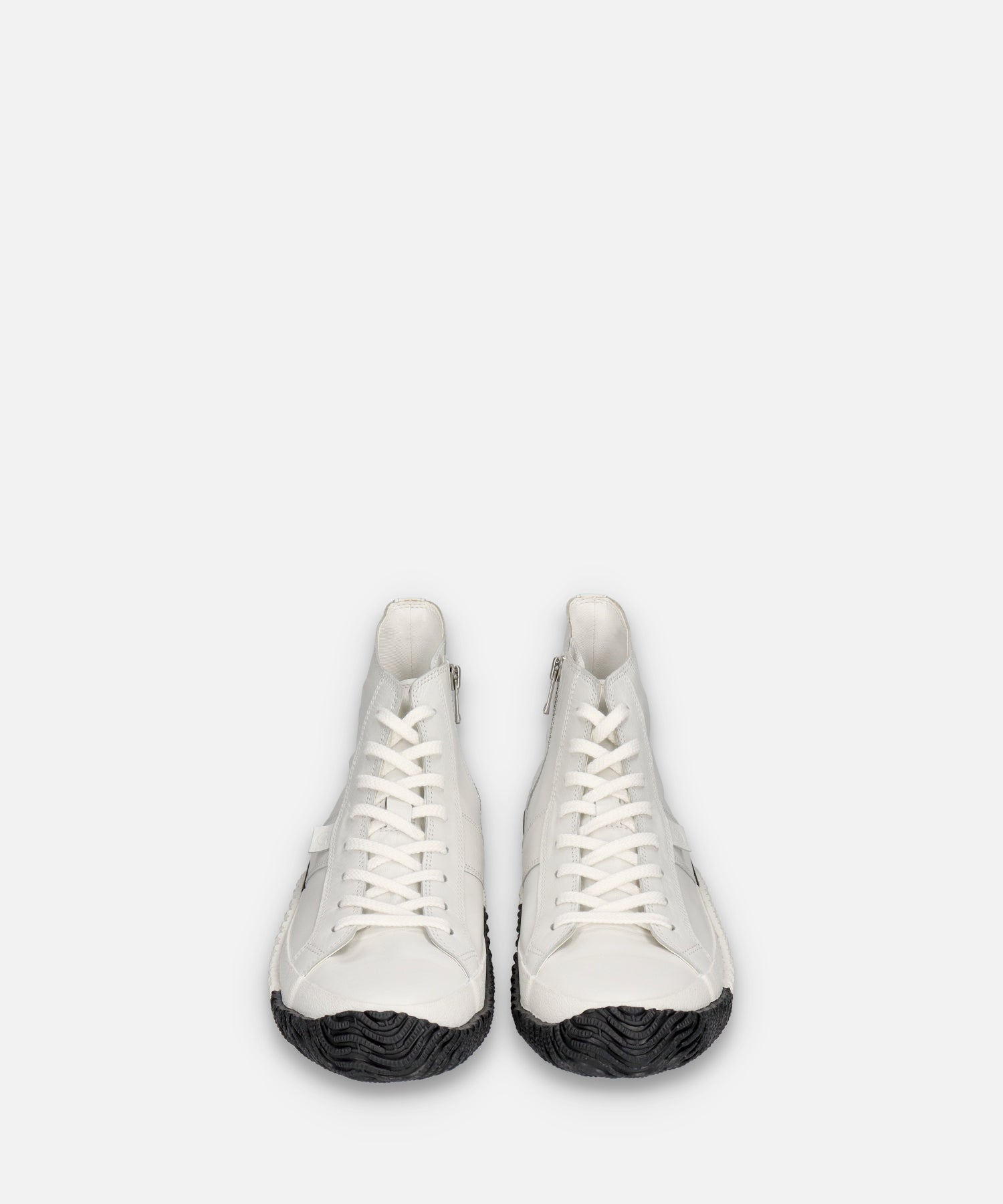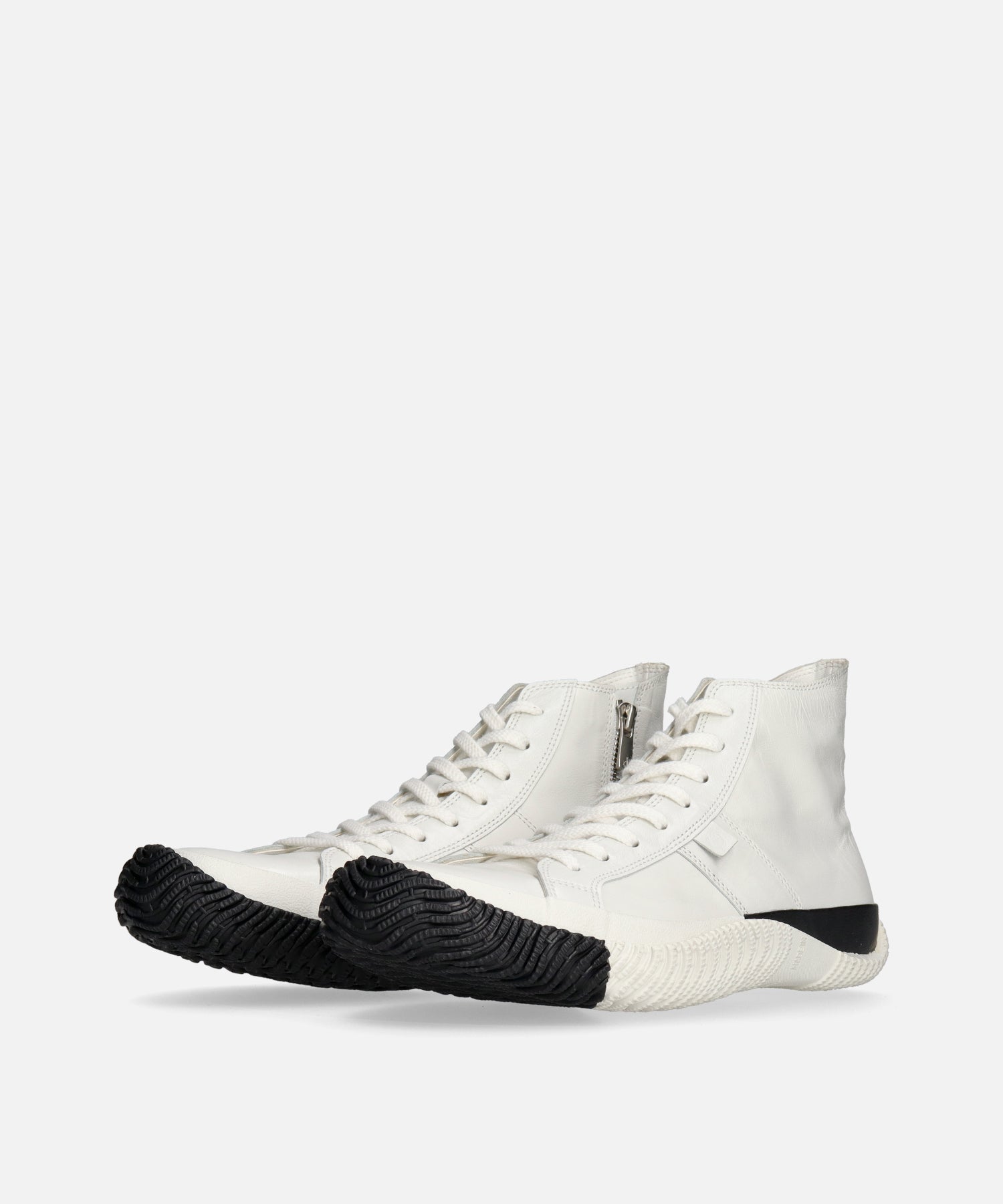 履き心地の良いカンガルーレザーのハイカットに、バイカラーのフォクシングテープとアウトソールでアクセントを加えた一足。 カンガルーレザーは柔らかさ・高い強度・軽さを兼ね備えており、その特徴から野球やサッカーのスパイクとしても使用されている人気素材です。内側にファスナーを付けてアクセントにしています。Shiro/Kuroシリーズは2024年のホリデーシーズン限定カラー。白と黒のコントラストが足元に洗練された存在感をプラスします。