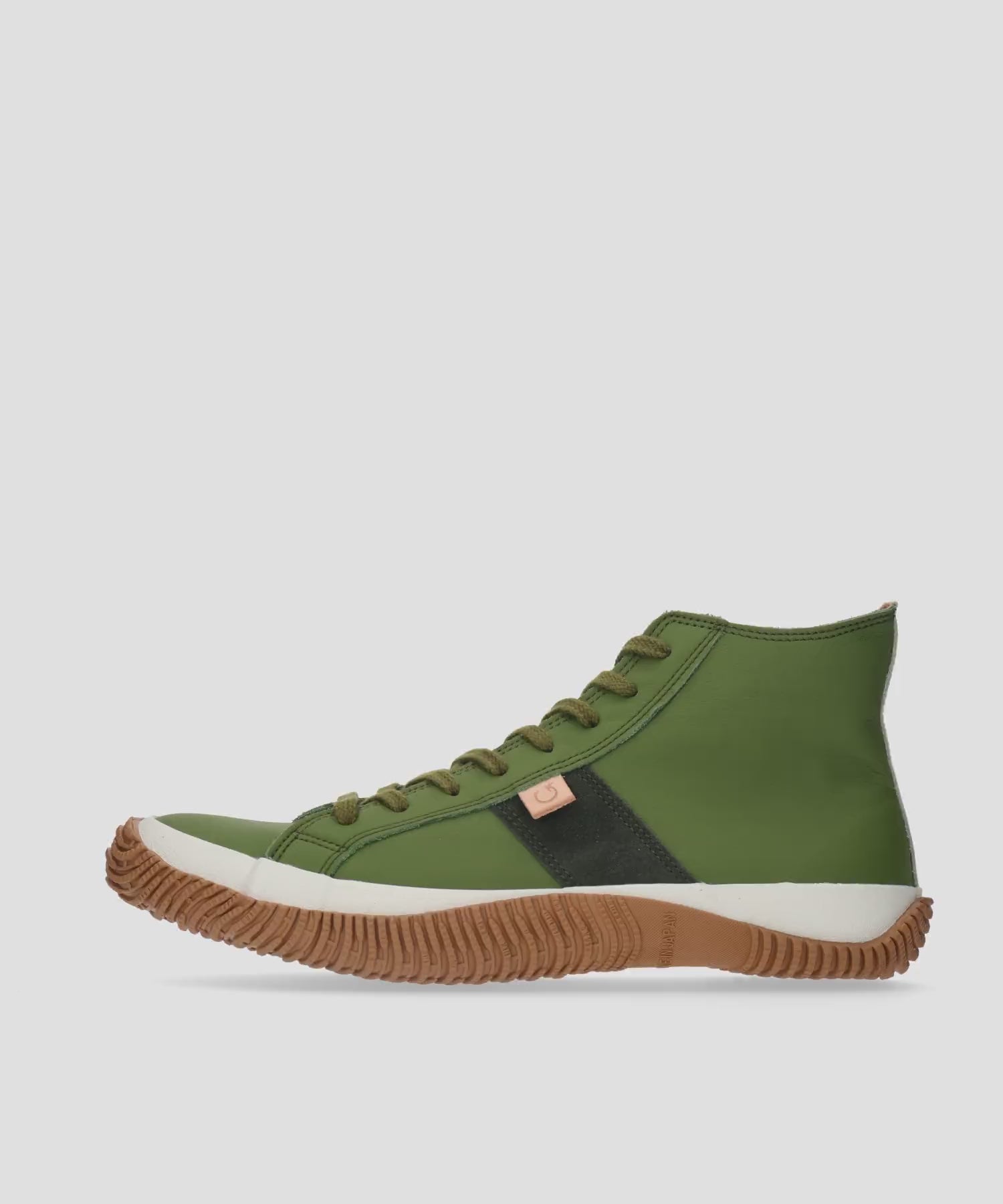 京都・宇治の老舗茶舗「森半」と共同開発した抹茶レザーのハイカットモデル。抹茶を製造する過程で生まれる残渣(ざんさ)を革の鞣しに再利用し、捨てられるはずの素材に新たな命を吹き込んだ、サステナブルなJapan Beautyモデルです。アッパーには、抹茶の自然な深みを活かした抹茶レザーを採用。切替部にはダークグリーンのスエード素材や踵部のホワイトのレザーで抹茶本来の深みある色味を引き立て、上品なアクセントになっています。ソールには当社ソールブランド「RUBEAR」のCNFソールを採用。植物由来の繊維素材セルロースナノファイバーをアウトソールのゴムに配合し、従来よりも耐摩耗性が約40%向上しています。伝統と革新を融合させた、現代のライフスタイルに寄り添う一足です。