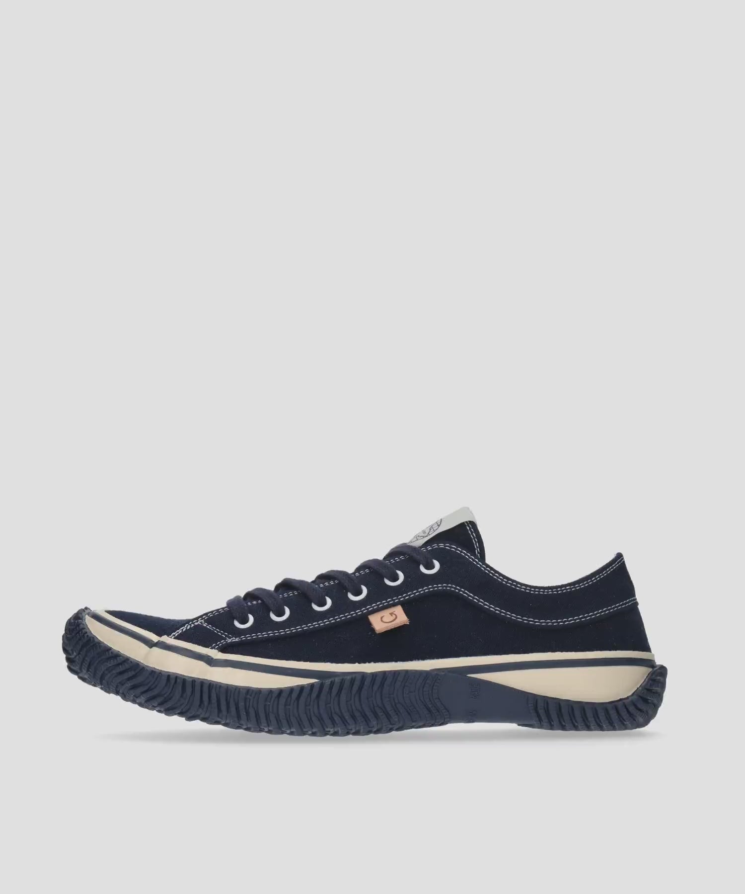 備後地方の伝統織物「備後絣(びんごかすり)」から派生した生地ブランド「備後節織」を使用したローカット。 ポコポコとしたネップ(節)があるのが特徴で、ゆっくり丁寧に織ることで空気を含んだような柔らかさと温かみある素朴な風合いが持ち味。 織元は現在国内に2社のみで、手仕事の工程が多いため生産量が限られた大変希少な生地を使用しています。 さらりとした肌触りで吸湿性・通気性に優れ、夏は涼しく冬はあたたかく感じられます。 使い込むほどに、よりソフトな風合いへと経年変化も楽しめます。シュータンには備後節織のネーム入り。