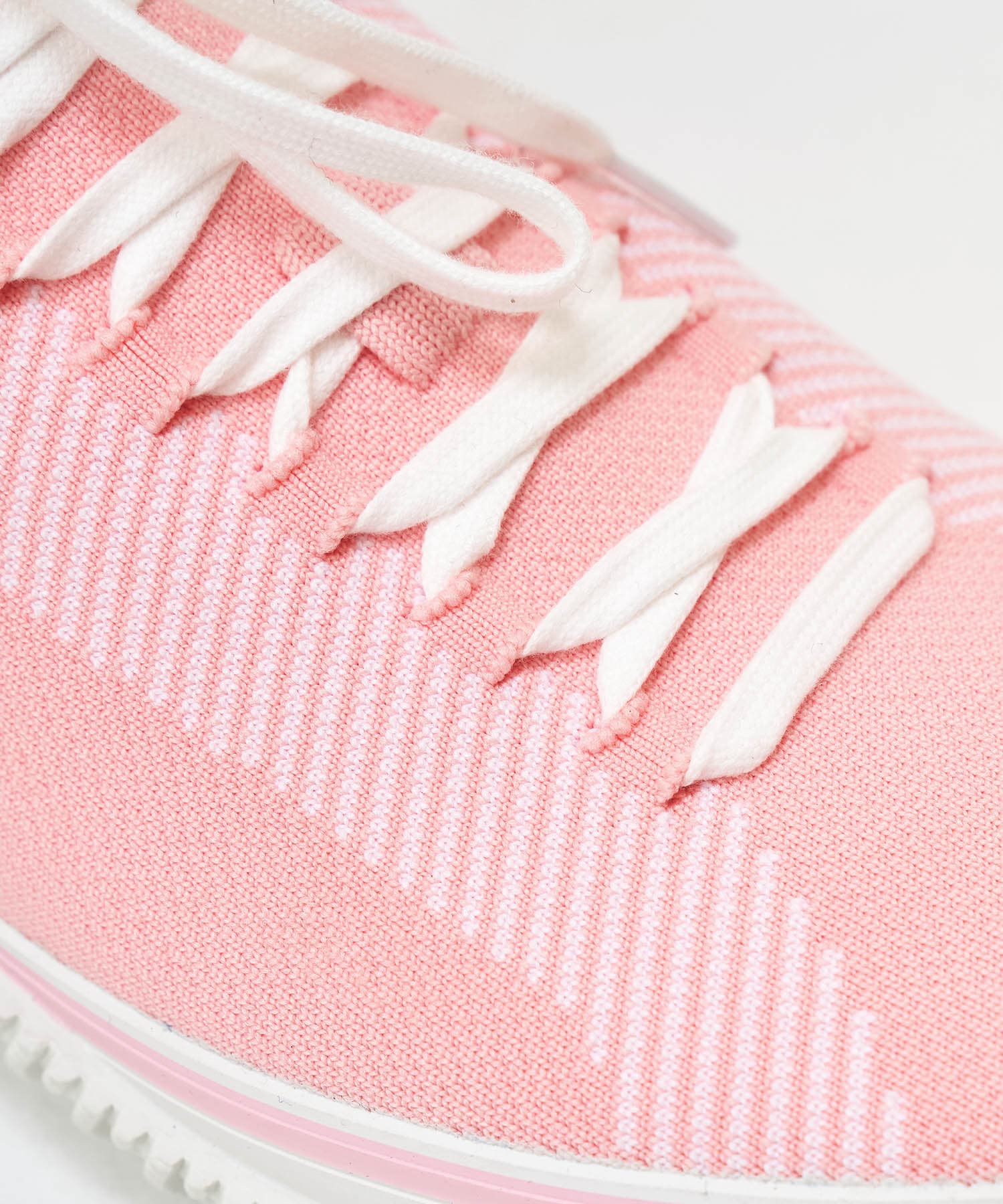 SP-110のアッパーデザインを編み目の細かいハイゲージニットで美しく再現。ハイゲージニットは伸縮性があり脱ぎ履きしやすく、素足でもサラッと優しい足当たりで、ソックスを履いているような感覚。通気性が良く、暑い季節でも心地よく履いていただけます。カップインソールはクッション性と防菌防臭機能を備え、取り外して水洗い可能。