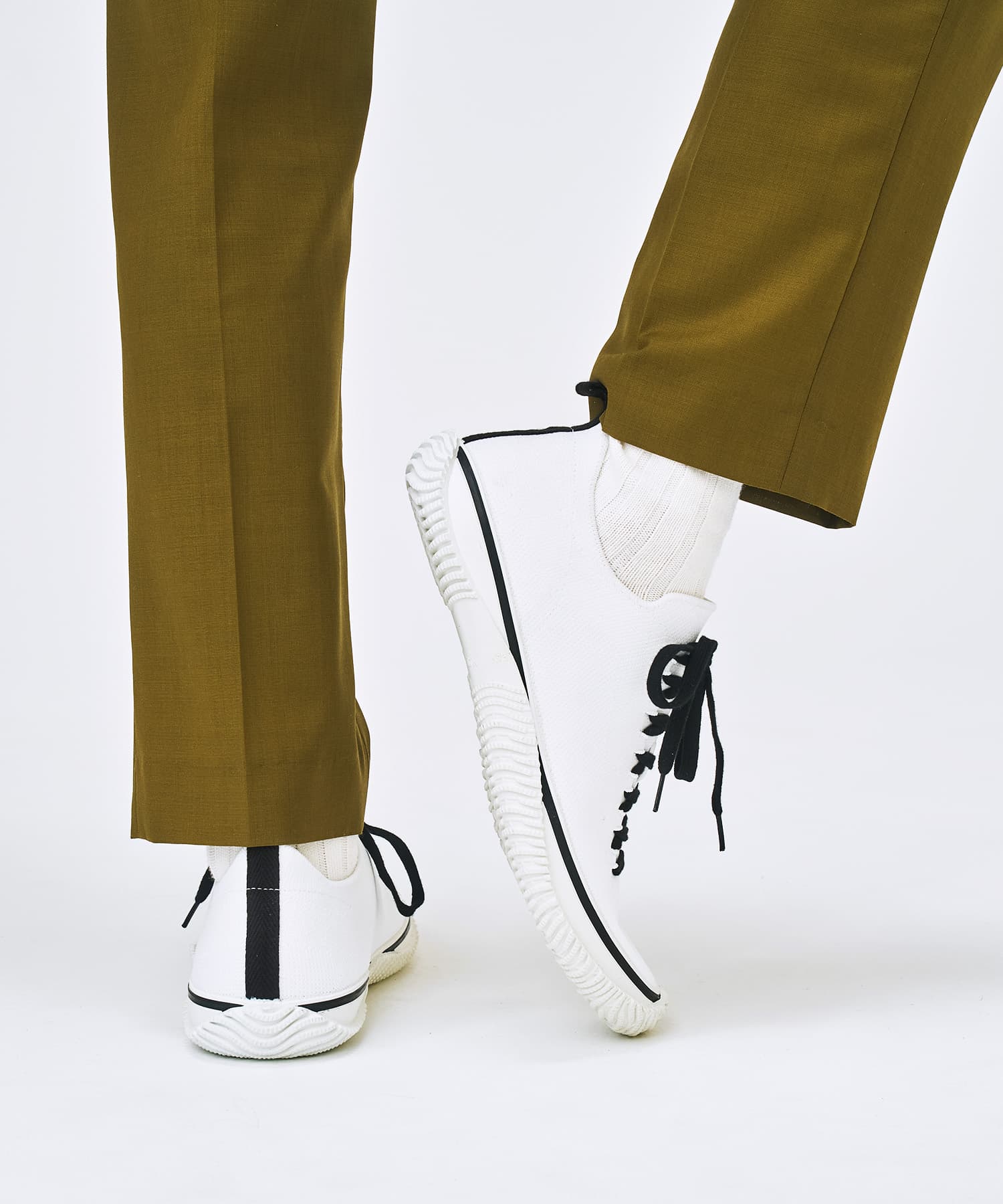 SP-1501は、スピングルの定番モデル「SP-110」のアッパーデザインを、ハイゲージニットで美しく再構築したローカットスニーカー。