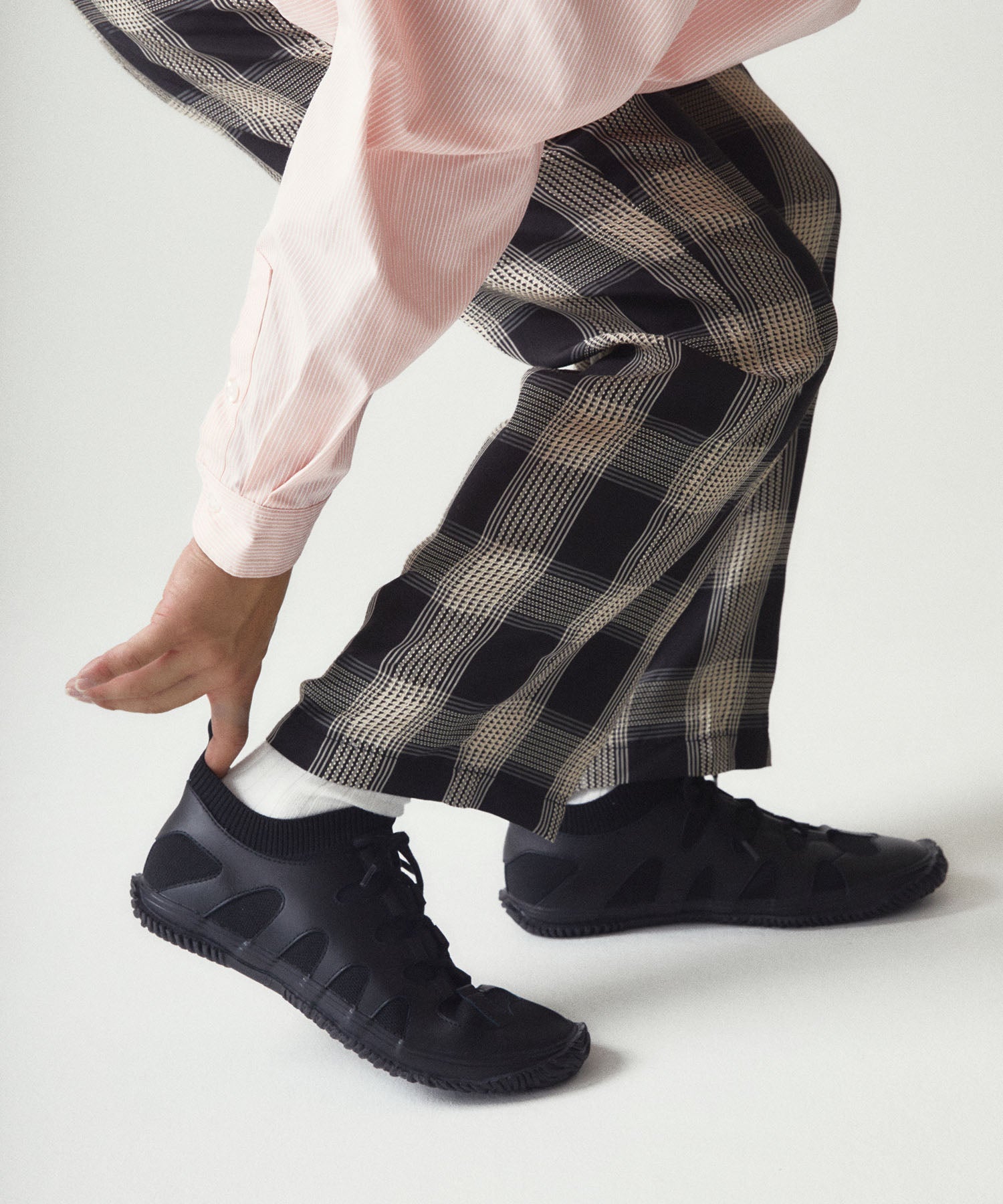 スポーティーな印象のニット素材に、足全体を程よくホールドするスムースレザーを組み合わせたスリッポンモデル。ニット部分が伸縮するため、靴紐をほどかずに着脱できるストレスフリーな仕様。カップインソールは取り外しができ、クッション性、通気性、防菌防臭機能を備えています。
