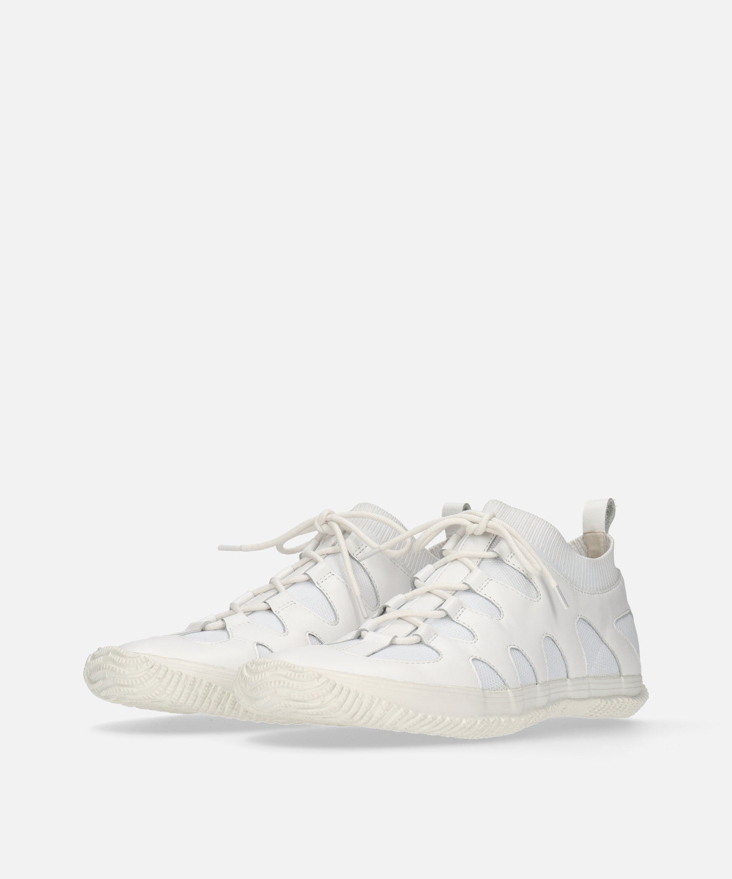 アッパー:ポリエステルのニット素材×牛スムースレザー