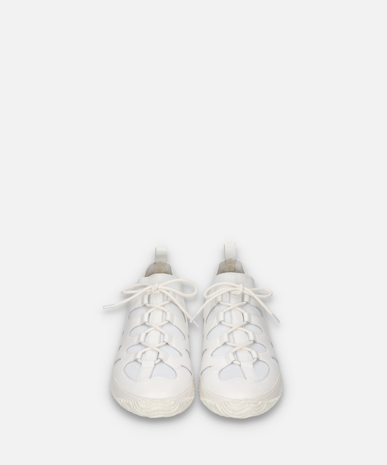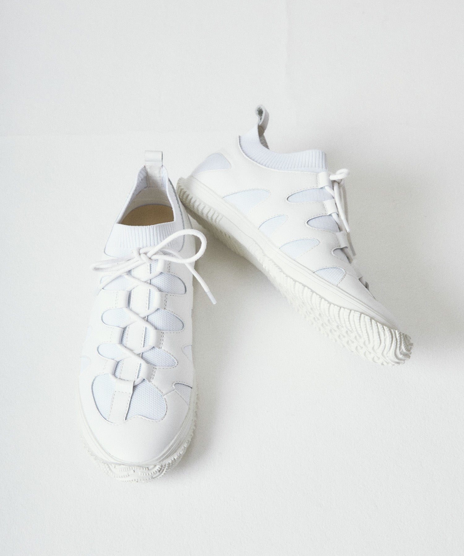 スポーティーな印象のニット素材に、足全体を程よくホールドするスムースレザーを組み合わせたスリッポンモデル。ニット部分が伸縮するため、靴紐をほどかずに着脱できるストレスフリーな仕様。カップインソールは取り外しができ、クッション性、通気性、防菌防臭機能を備えています。