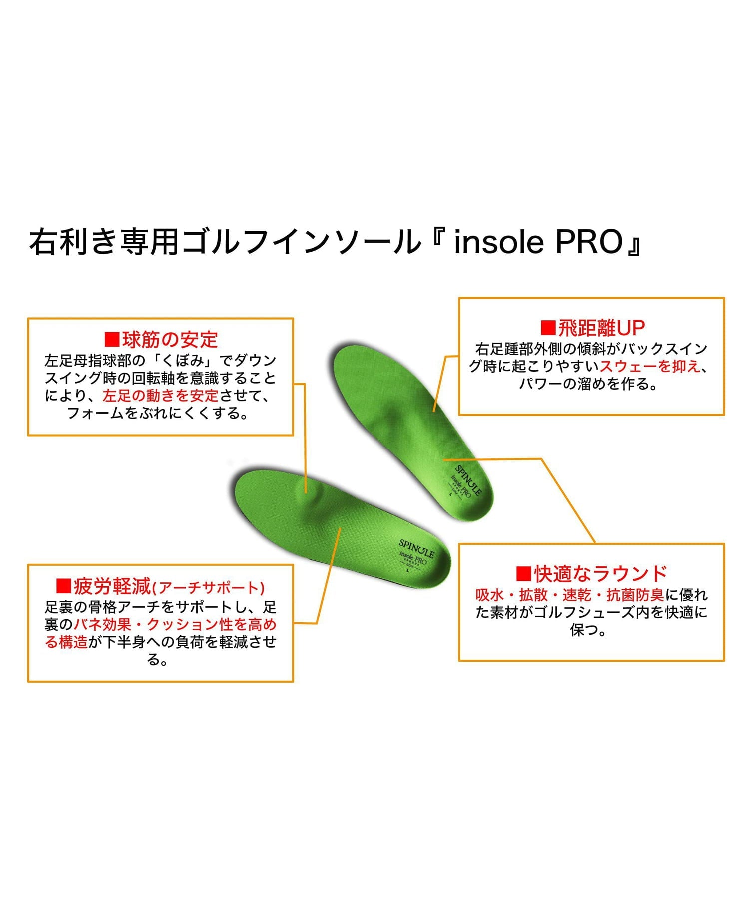 インソールには右利き専用ゴルフインソールinsolePROを採用し、飛距離アップと球筋の安定性をサポート。かかとの外側部分を厚くすることでスウェー(体重が横方向に流れる)を抑え、バックスイング時に パワーを貯められます。また足裏の3つのアーチをサポートしクッション性を高める構造により、下半身への負荷を軽減し疲労によるショットの崩れを防ぎます。靴の内側には防水透湿素材GORE-TEXファブリクスを採用。水かき付きのシュータンや撥水加工シューレースなど細部にまで防水性にこだわっています。