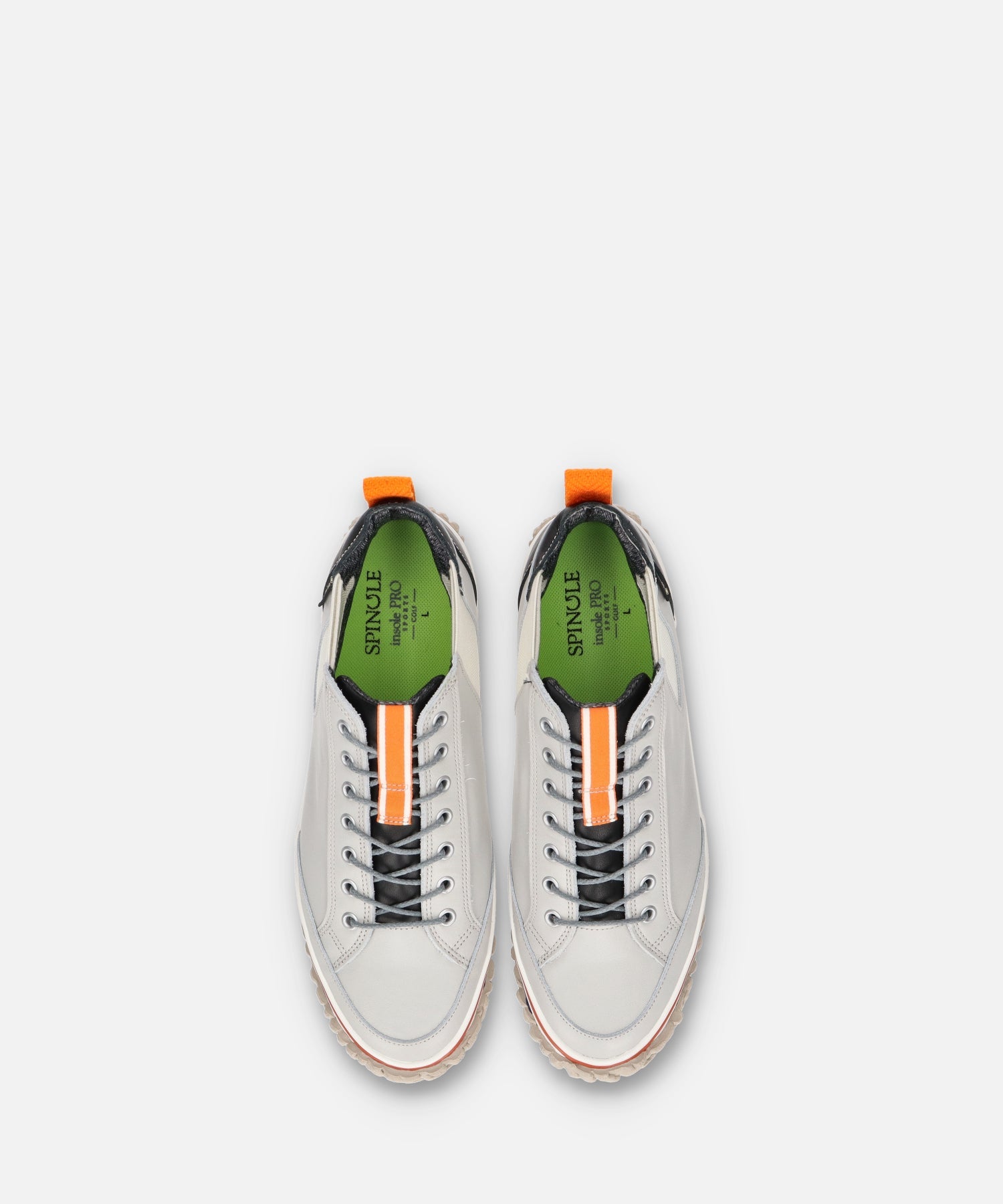 ゴルフコースのラウンド時と街履きを兼用できる画期的なゴルフスニーカー。伸縮するサイドゴアで着脱が楽にできて、しっかりホールドしてくれる一足です。新開発のアウトソールはスパイクレスながら表面の凹凸で芝を捉え、カート道などのフラットな場所でも滑りにくい仕様。抗菌仕様のため、ゴルフ場への雑菌の持ち込みを防げます。スピングルの特徴であるつま先の巻き上げソールは、スイングのフォロースルーの際の安定性を高めます。