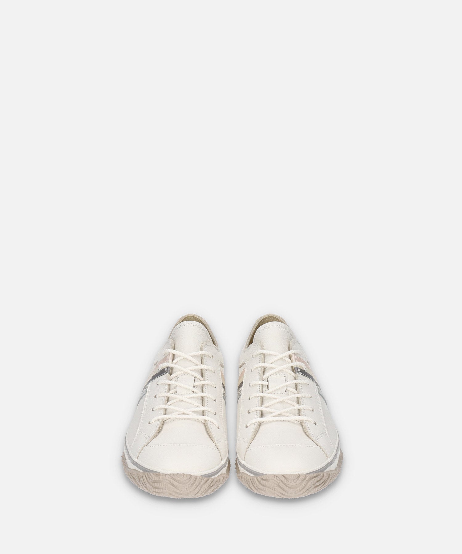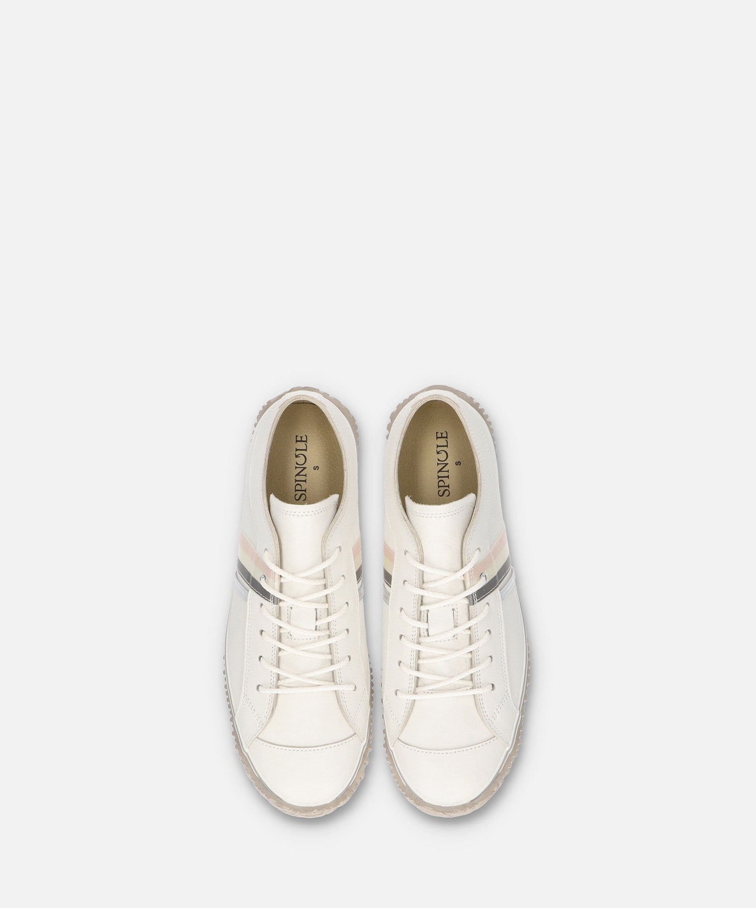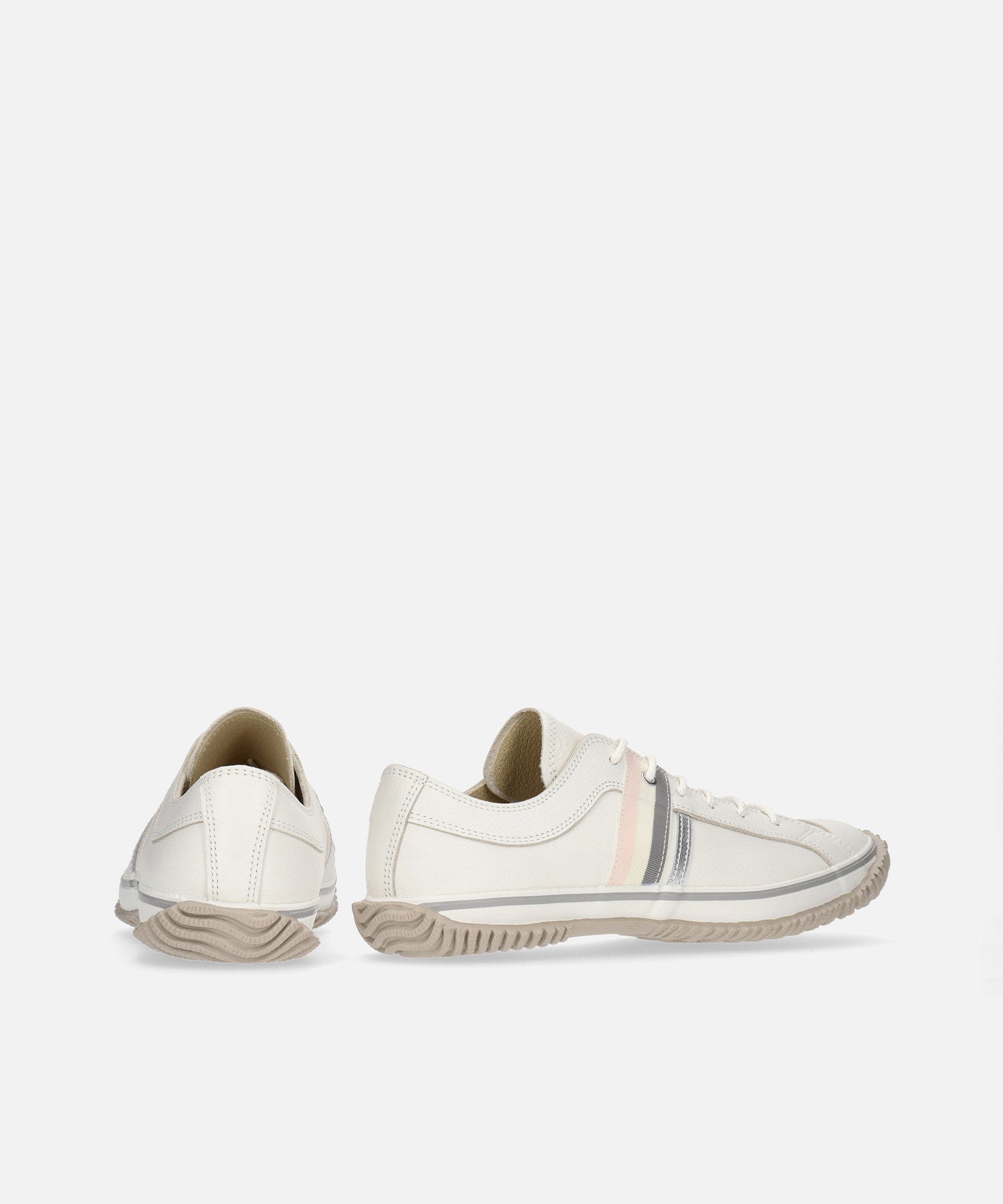 牛スムースレザーのアッパーにアクセントとしてリボンテープで飾りを付けた定番モデル。 洗練されたデザイン、爽やかなカラーリング、浅い巻き上げソールのすっきりとしたシルエットで男女問わず人気です。