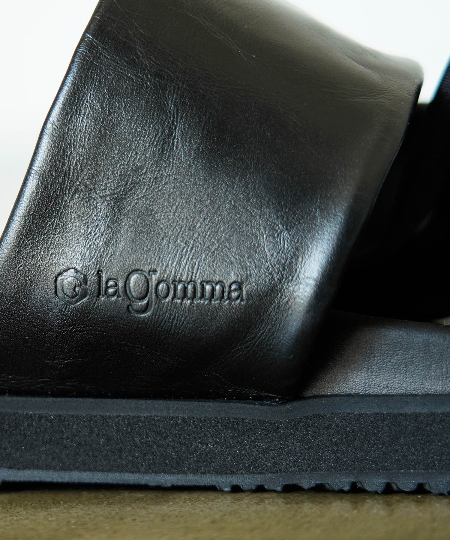神戸の老舗シューズメーカー「la gomma」と共同開発したバックストラップサンダル。ストレッチ素材のバックストラップとソフトなフットベッドでストレスフリーな履き心地。艶のあるカウレザーをパーツ使いし、高級感のある大人のサンダルに仕上げました。アッパーの内側に「la gomma」の型押しロゴ入り。