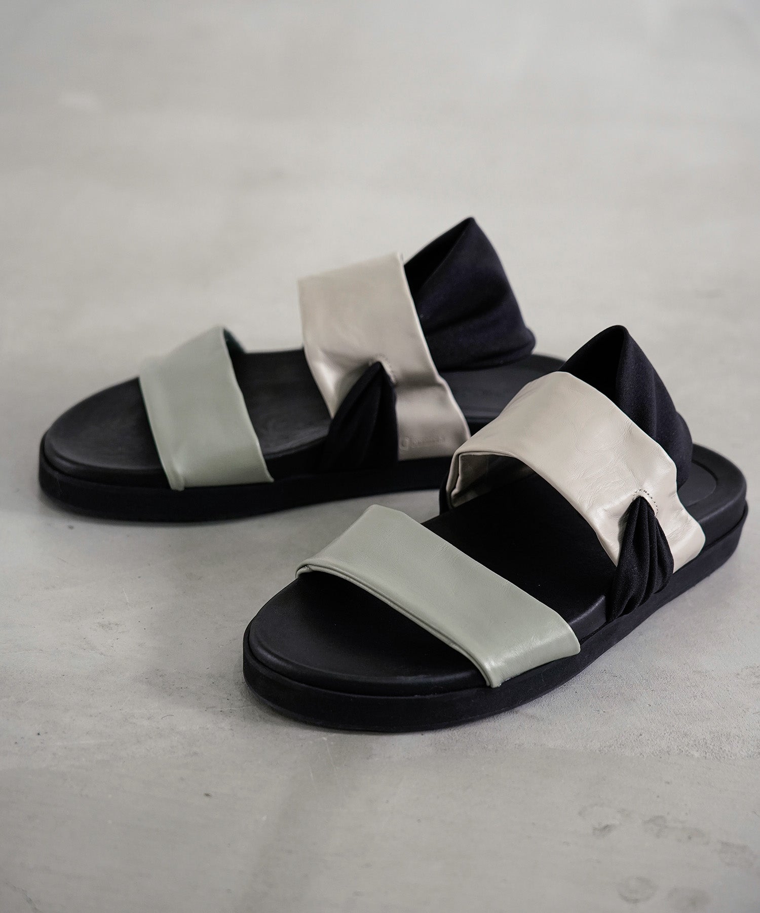 神戸の老舗シューズメーカー「la gomma」と共同開発したストラップサンダル。ダブルストラップに加え、かかとをホールドするストレッチ素材のストラップを組み合わせ、ストレスフリーな履き心地。艶のあるカウレザーで高級感ある大人のサンダルに仕上げました。アッパーの内側に「la gomma」の型押しロゴ入り。