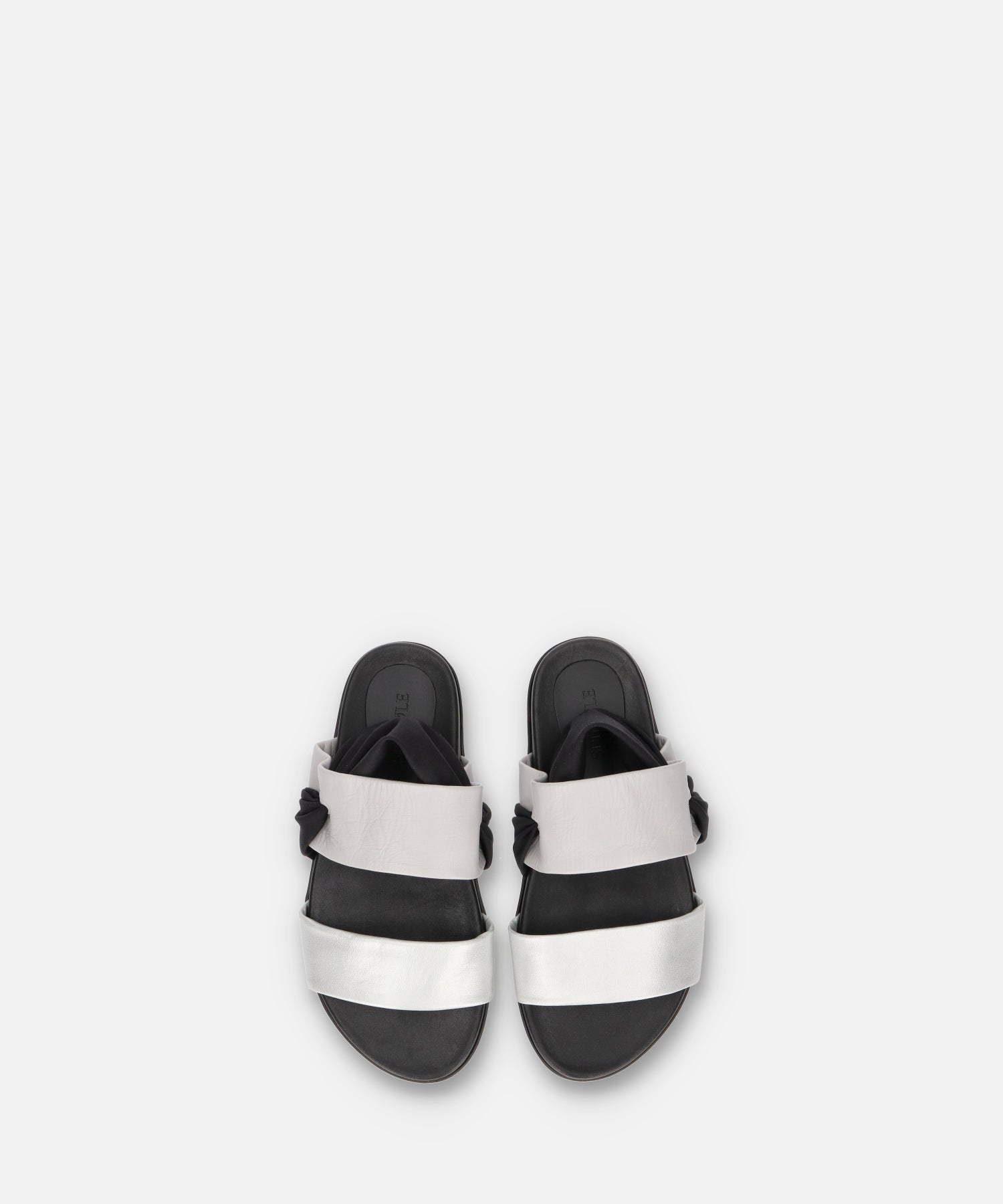 神戸の老舗シューズメーカー「la gomma」と共同開発したストラップサンダル。ダブルストラップに加え、かかとをホールドするストレッチ素材のストラップを組み合わせ、ストレスフリーな履き心地。艶のあるカウレザーで高級感ある大人のサンダルに仕上げました。アッパーの内側に「la gomma」の型押しロゴ入り。