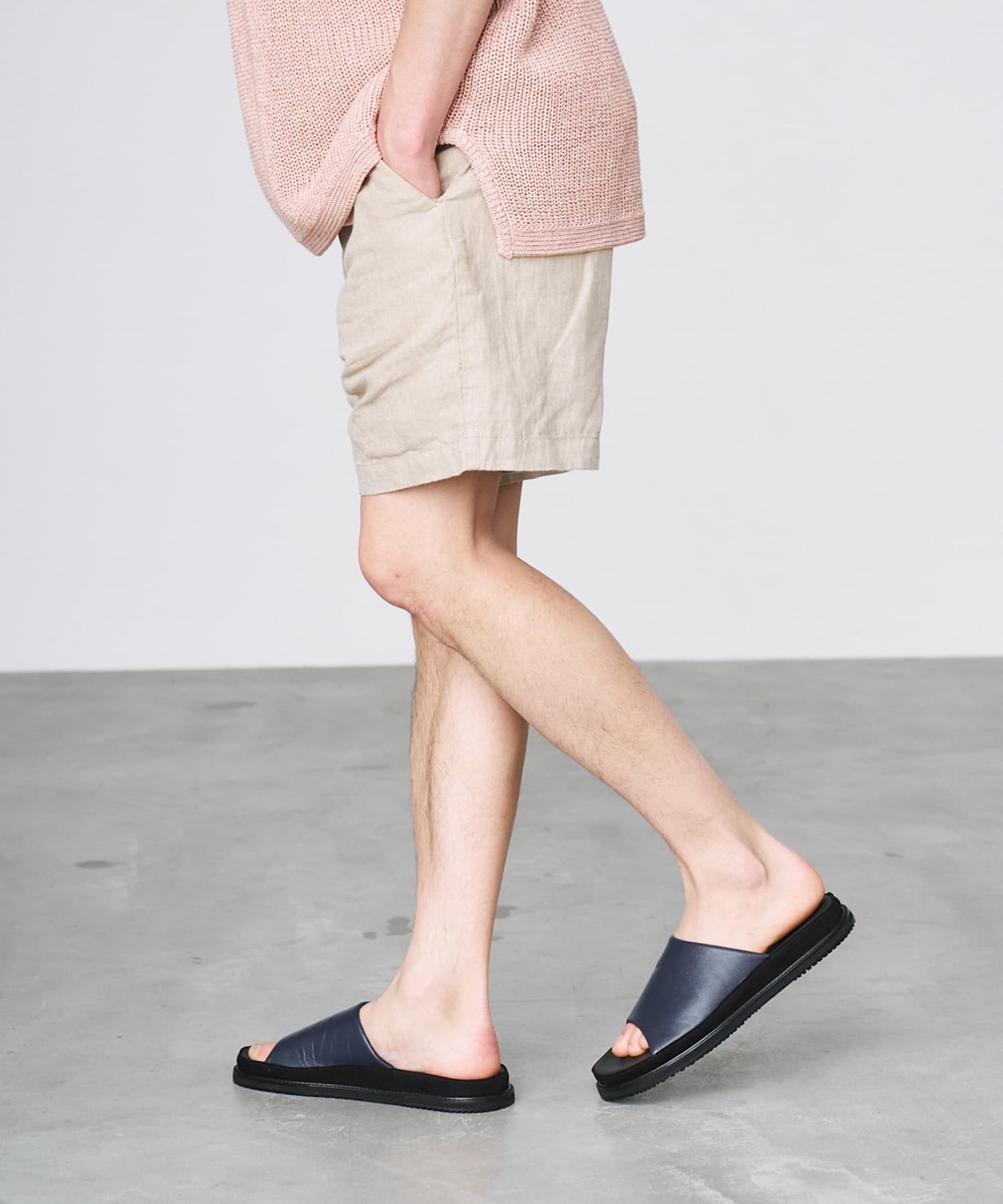 SPINGLEの代名詞であるカンガルーレザーを採用したサンダル。フットベッドは柔らかく足当たりが良くなるように硬度を何度も調整して開発したスピングルオリジナルのフットベッドを用いています。また、実際に足裏が接するインソールのレザー部分には、天然皮革同等の吸放湿性能に優れた機能素材を使用し、心地よさを追求しました。約8mmのEVAミッドソールによって程よい厚底感をもたらしているのもポイント。サンダル側面にはスエードを使用し、異素材のコントラストがアクセントに上質感を演出しています。※最初は少しタイトに感じられても、履く度にカンガルーレザーが足に馴染んでフィットする設計となっています。