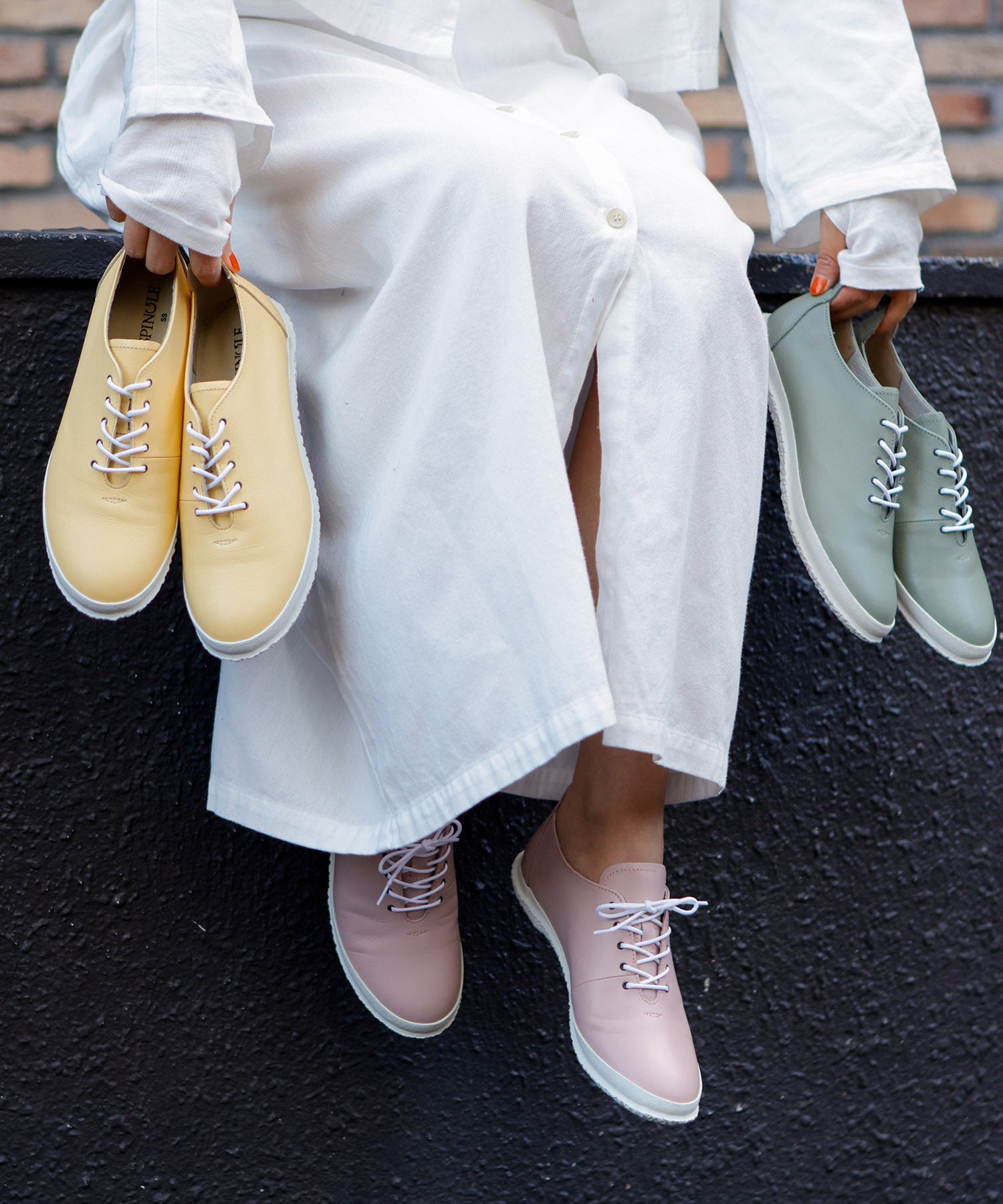 軽く、薄く、楽にをコンセプトに、柔らかい牛革を使用したシンプルなフラットシューズ。優しい足当たりと踵周りのホールド感を兼ね備えています。ライニングには吸湿速乾性・耐摩耗性に優れた機能性素材を用いています。