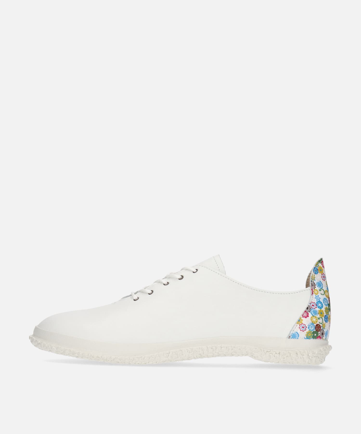 SP-1813は「Liberty」をイメージしたオリジナルフラワープリントを踵飾りに使用したSP-1801タイプのローカット。色彩が弾けるこのシーズン。陽気なムードを表現するフラワープリントを落ち着いたトーンで和らげる配色に仕上げました。履く人の気持ちまで明るくしてくれるカラーリングです。