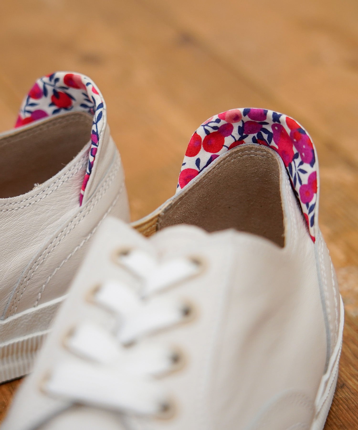 軽く柔らかなカンガルーレザーを使用した、丸みのあるフォルムのレディースローカットシューズ。花柄のリバティープリントや可愛らしいステッチデザインがアクセントになり、女性らしい魅力が詰まったカジュアルな一足。ベロにはSPINGLE型押しロゴ入り。レディースモデル初の「RUBEAR」NRソール採用で、天然ラバーの柔らかさとしなやかさはそのままに弾力性と耐摩耗性を向上させ、心地良い履き心地に仕上げました。