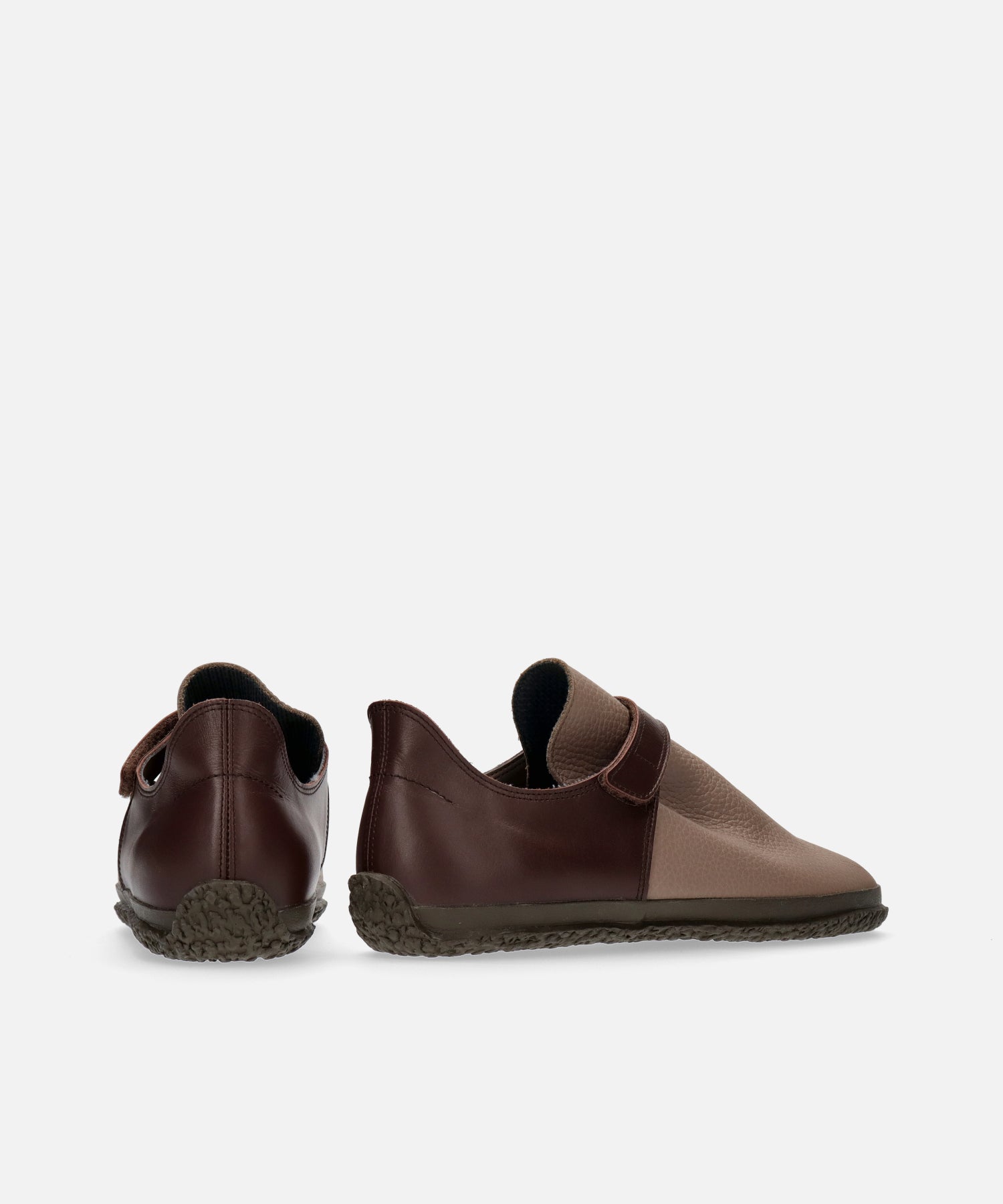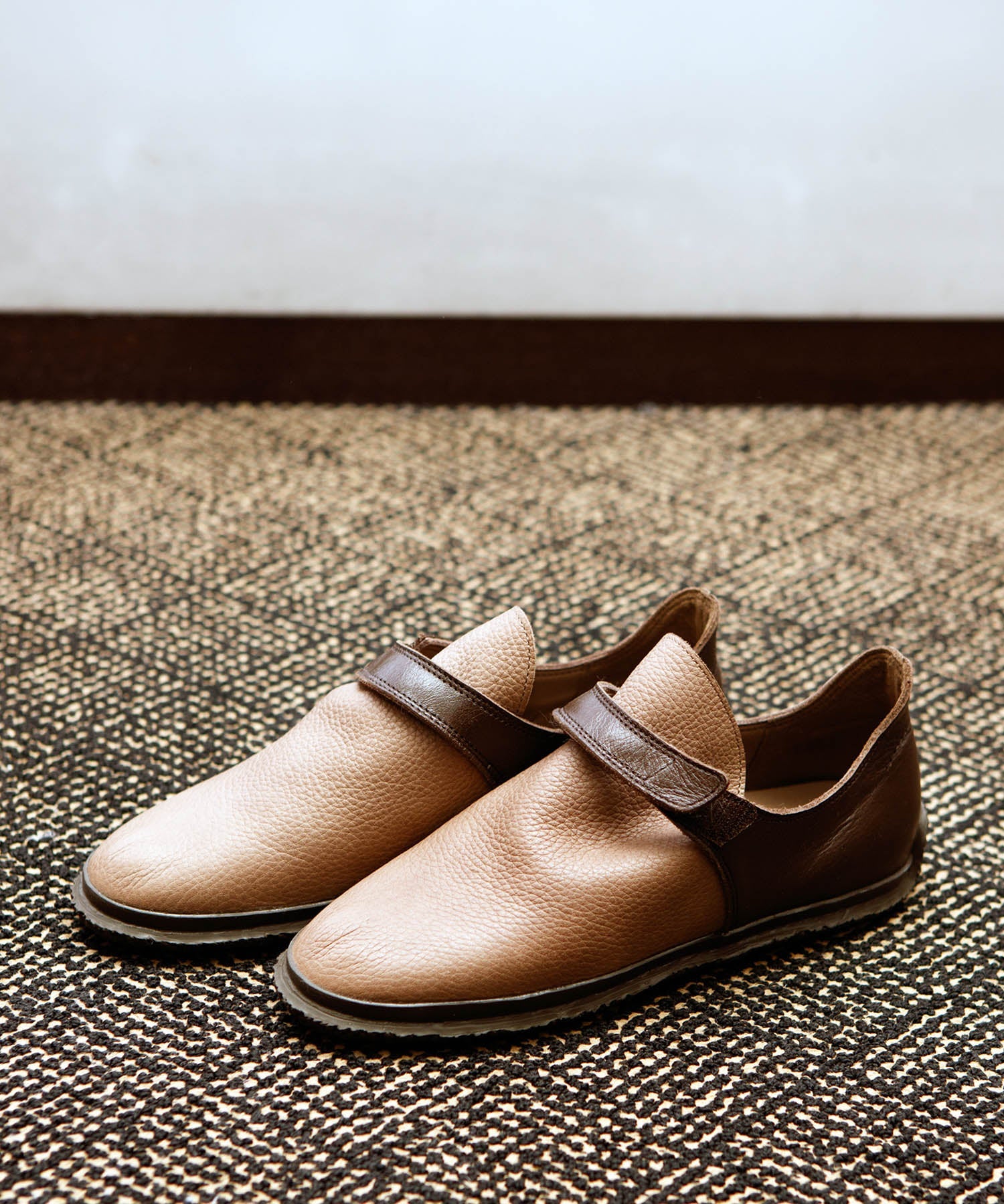 シボの風合いを活かした厚みのあるレザーが、落ち着いた高級感を漂わせるベルクロシューズ。素材の深みと立体的なフォルムが足元に上品な印象を与えます。