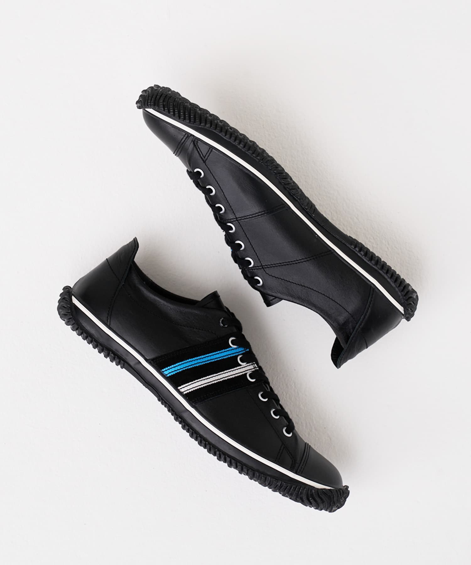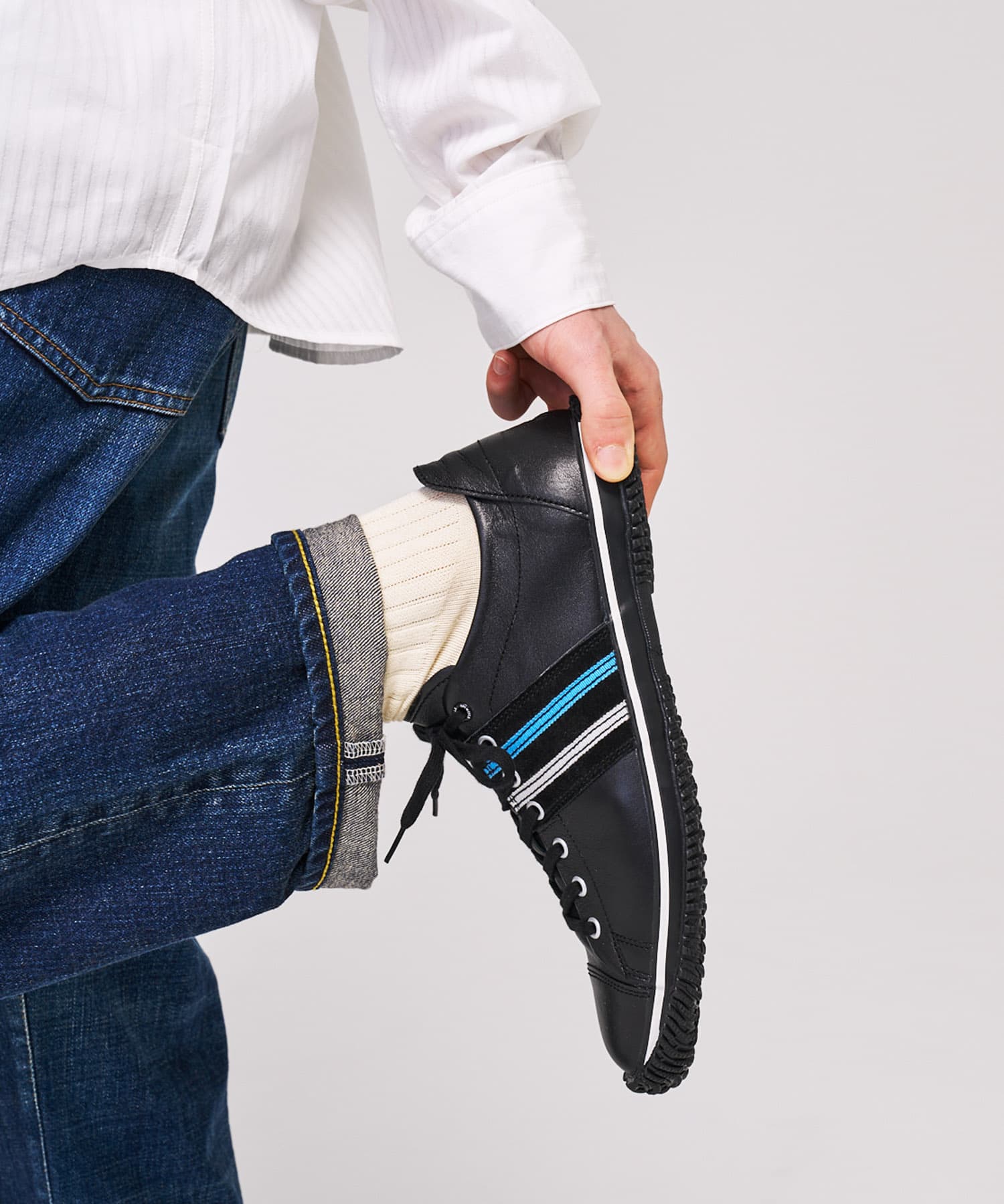 カンガルーレザーで履き心地にこだわりつつ、外側にのみ牛ベロアラインでアクセントを施した定番モデル。カンガルーレザーは柔らかさ・高い強度・軽さを兼ね備えており、その特徴から野球やサッカーのスパイクとしても使用されている人気素材です。