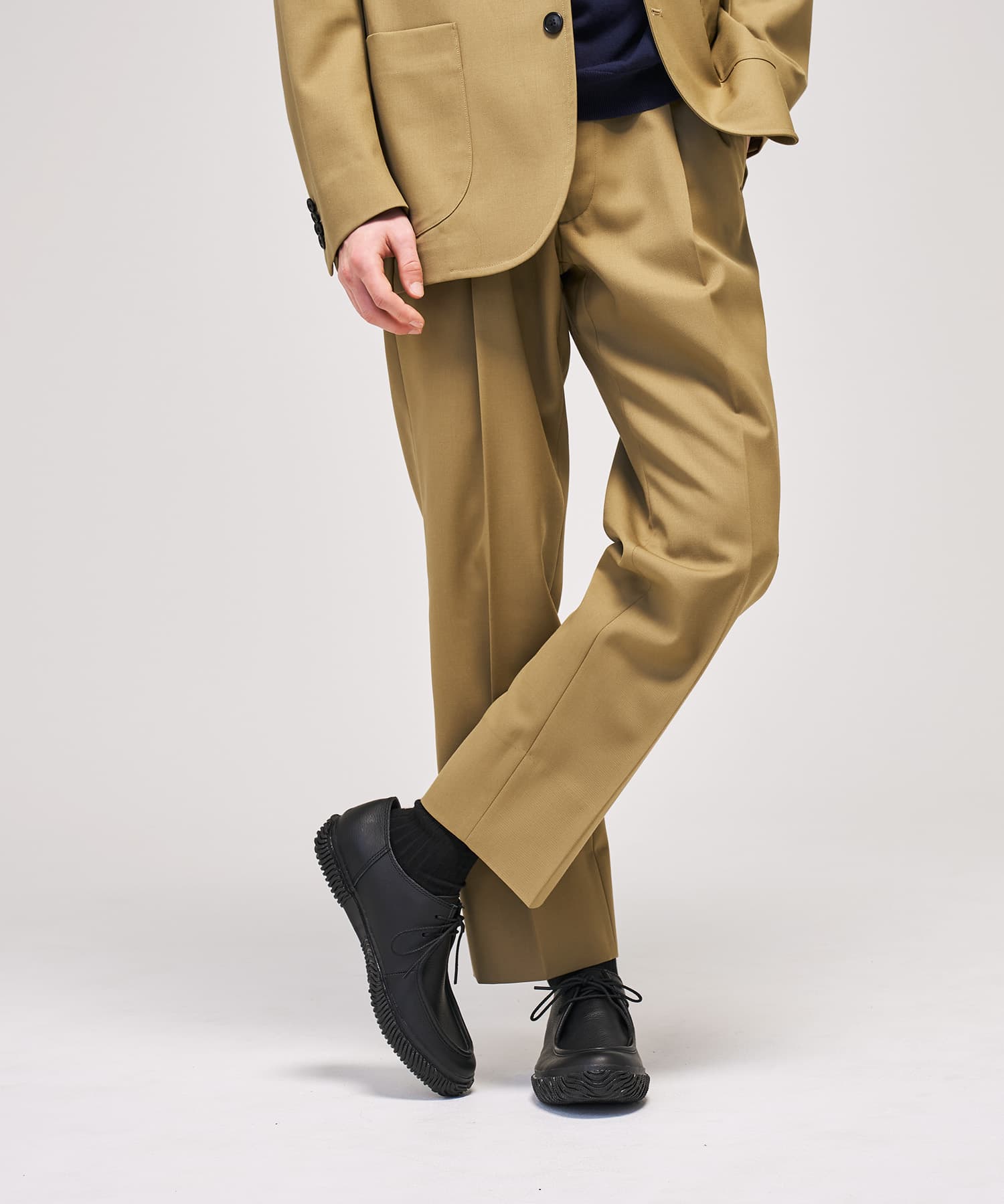 トゥ部分のモカシン縫いが特徴的なチロリアンテイストなデザインに、スピングルの代名詞である巻き上げソールを合わせました。丁度くるぶしの下辺りにおさまる履きやすい丈感でコーディネートしやすく、適度なカジュアル感と歩きやすさを兼ね備えています。アッパーにはシボの入った牛革を使用し、柔らかなレザーとクッション性のあるインソール、屈曲性の高いアウトソールが足を優しく包み込みます。