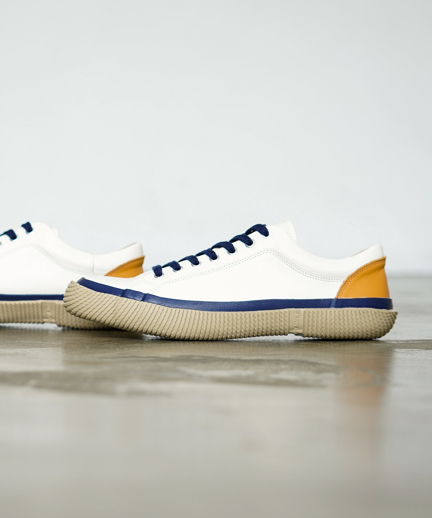 ソール全面を巻き上げるNo.3 Outsoleを採用したローカット。シンプルな意匠ながらスピングルらしさを感じさせるソールデザイン。履き口周りにはパッドを入れ、足当たりの良さを追求。かかとの切り返しパーツは後ろ姿のアクセントになっています。