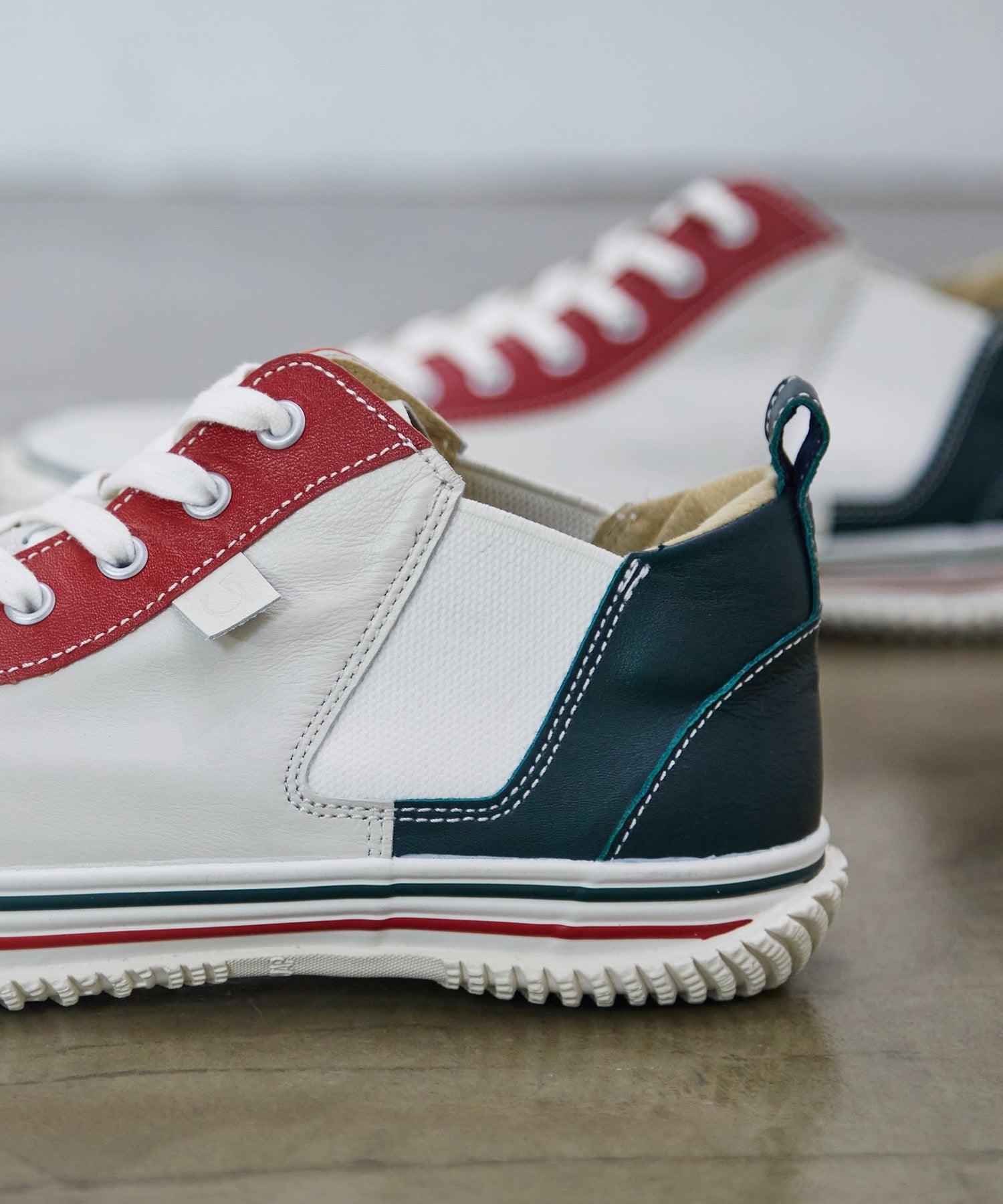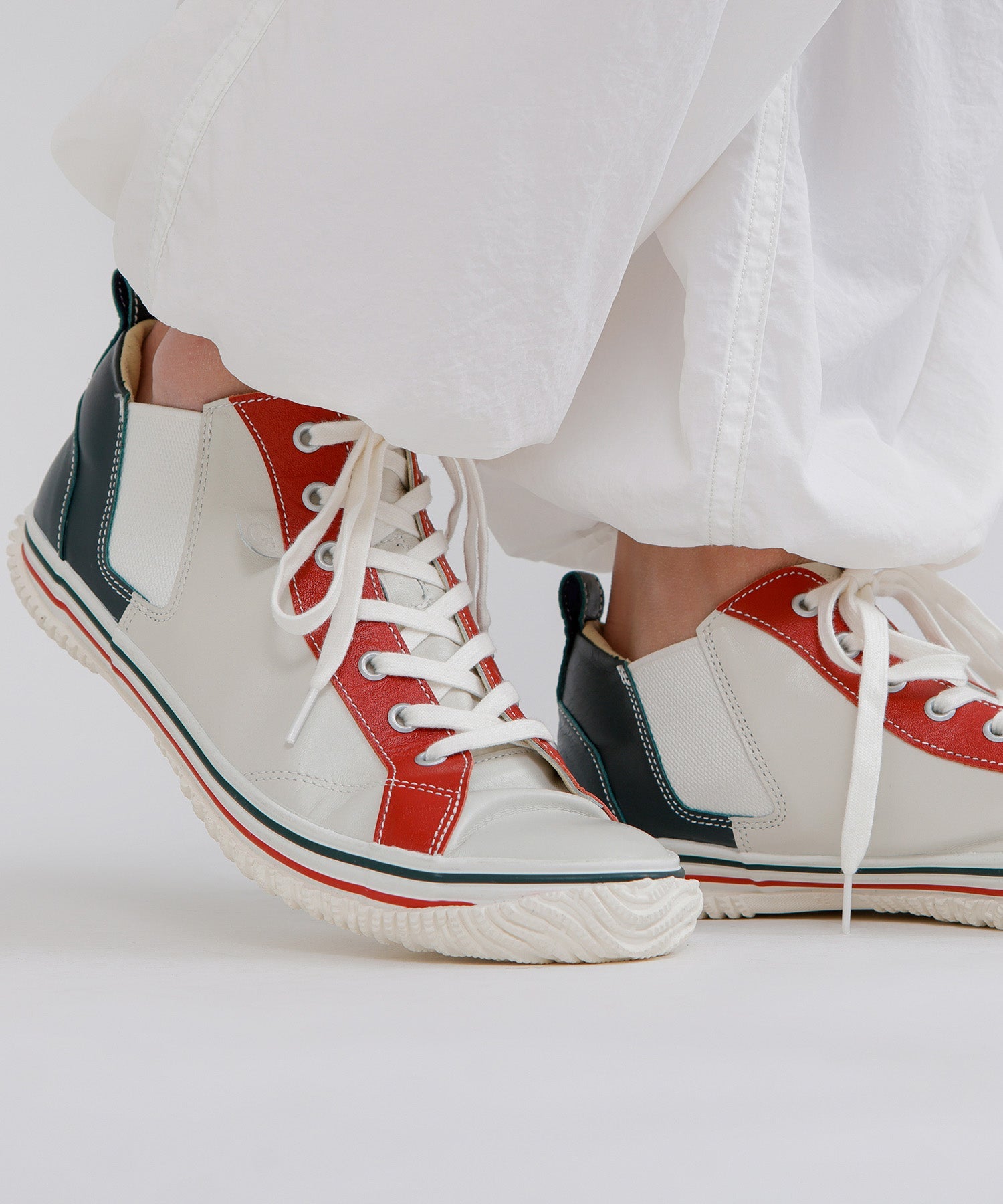 くるぶし周りの絶妙な丈感とフォルム、ブランドを代表する巻き上げソールや凹凸のあるフォクシングテープ、