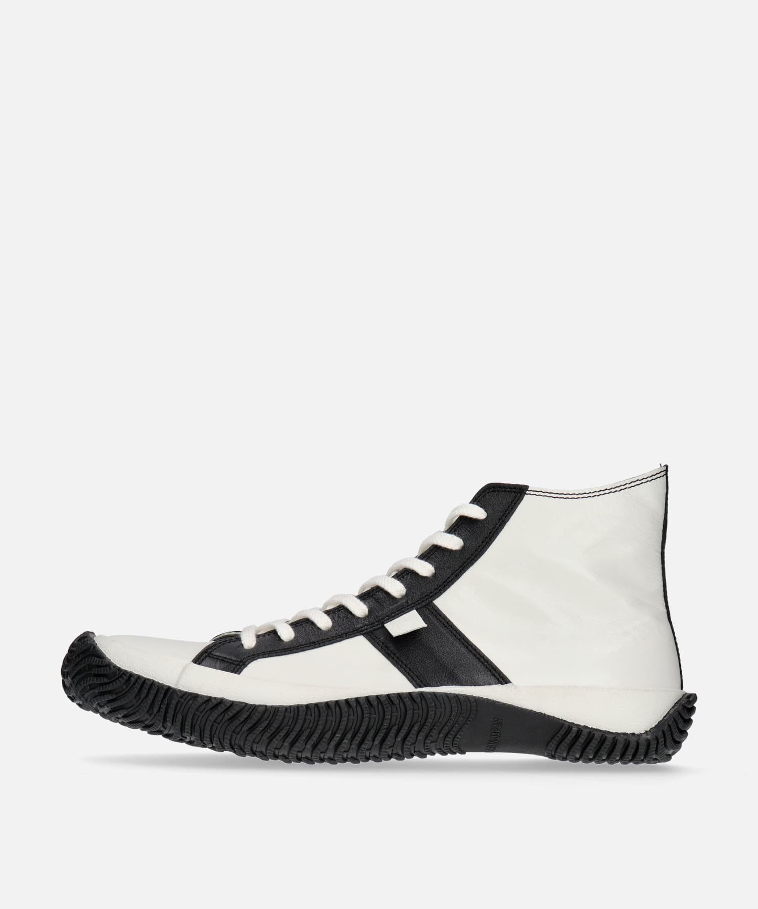 アッパーのレザーにはカンガルーレザーを用いて、ハイカットのシルエットが足首周りまで優しく包み込んでくれつつ、踵は芯材によるホールド感を兼ね備え、長時間の使用でも疲れにくい設計です。