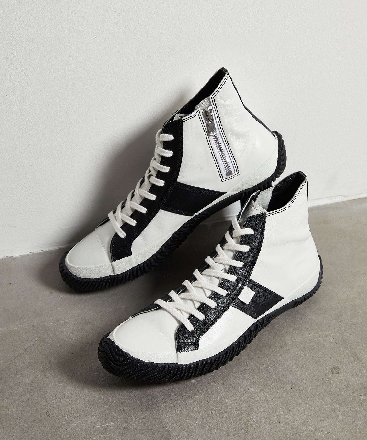 履き心地の良さにこだわり、カンガルーレザーを使用したハイカットの定番モデル。カンガルーレザーは、柔らかさ、高い強度、軽さを兼ね備えており、その特徴から野球やサッカーのスパイクとしても使用されている人気素材です。内側にファスナーを付けてアクセントにしています。