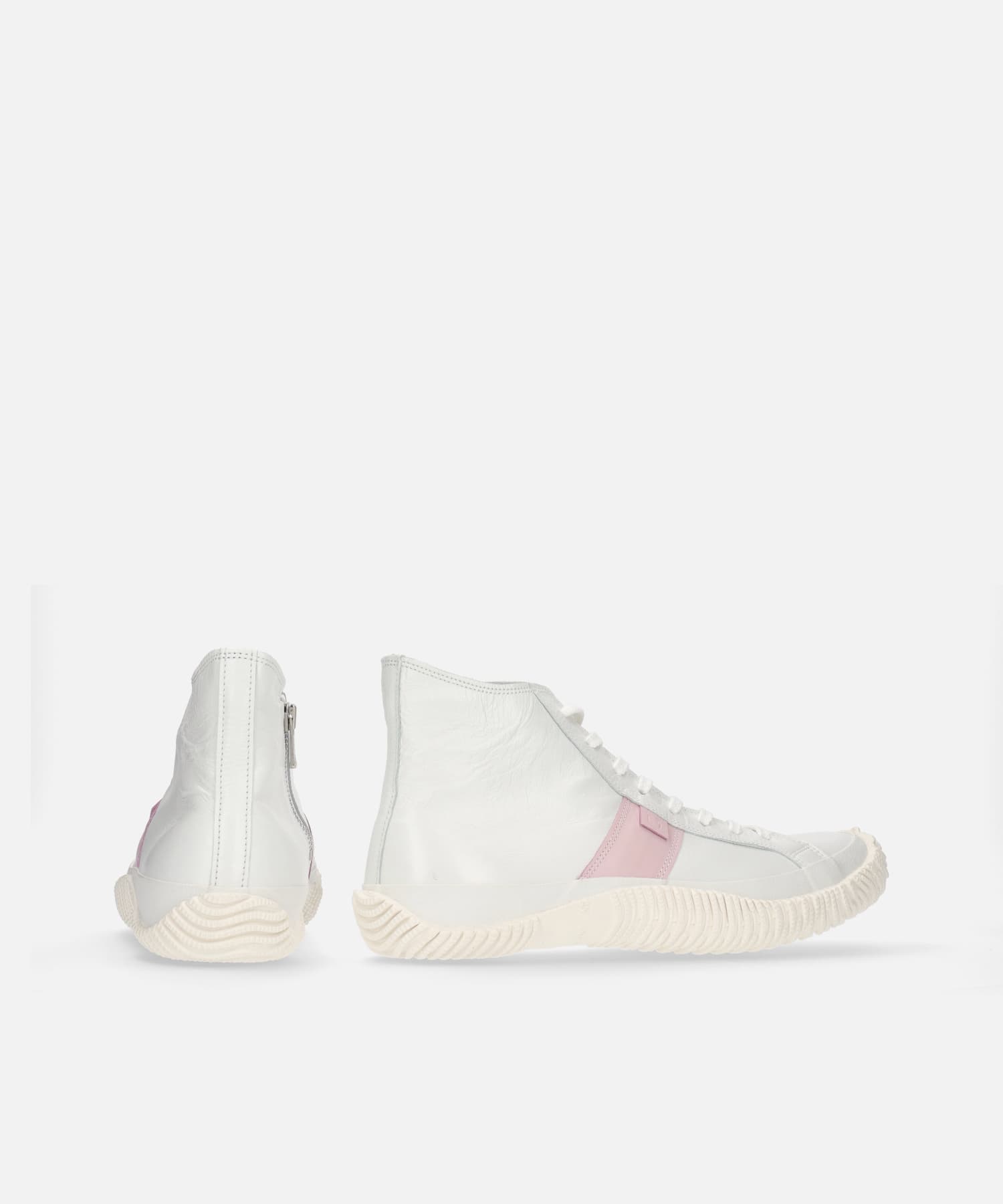 履き心地の良さにこだわり、カンガルーレザーを使用したハイカットの定番モデル。カンガルーレザーは、柔らかさ、高い強度、軽さを兼ね備えており、その特徴から野球やサッカーのスパイクとしても使用されている人気素材です。内側にファスナーを付けてアクセントにしています。