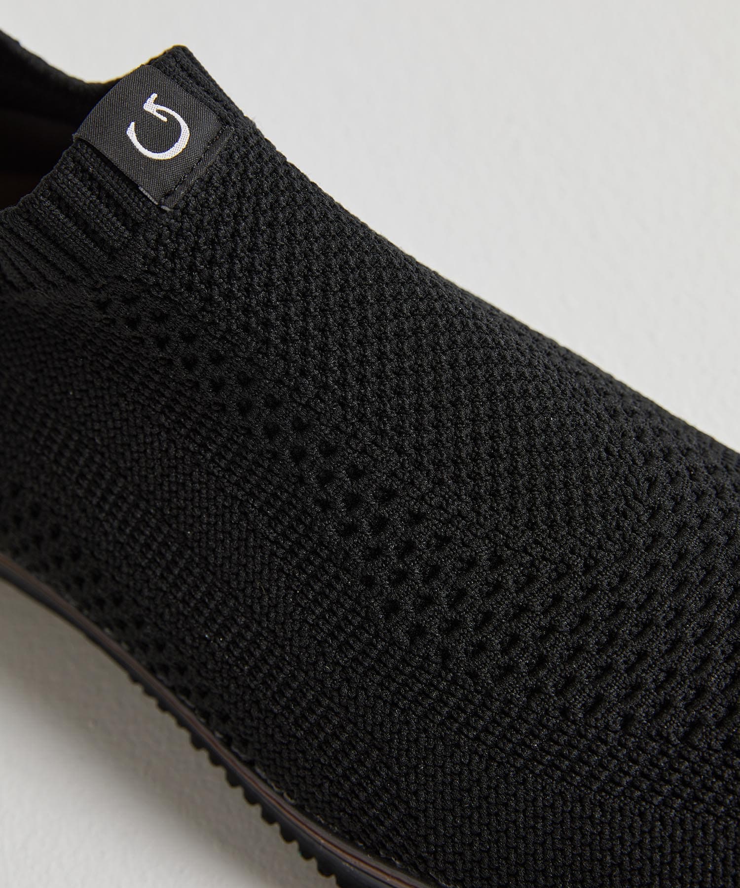 ナイロンのジャガード織りニットを使用したスリッポンモデル。伸縮性が良いため脱ぎ履きしやすく、革や生地とは違った心地よさを感じられる一足。カップインソールは取り外しができ、クッション性、通気性、防菌防臭の機能を備えています。