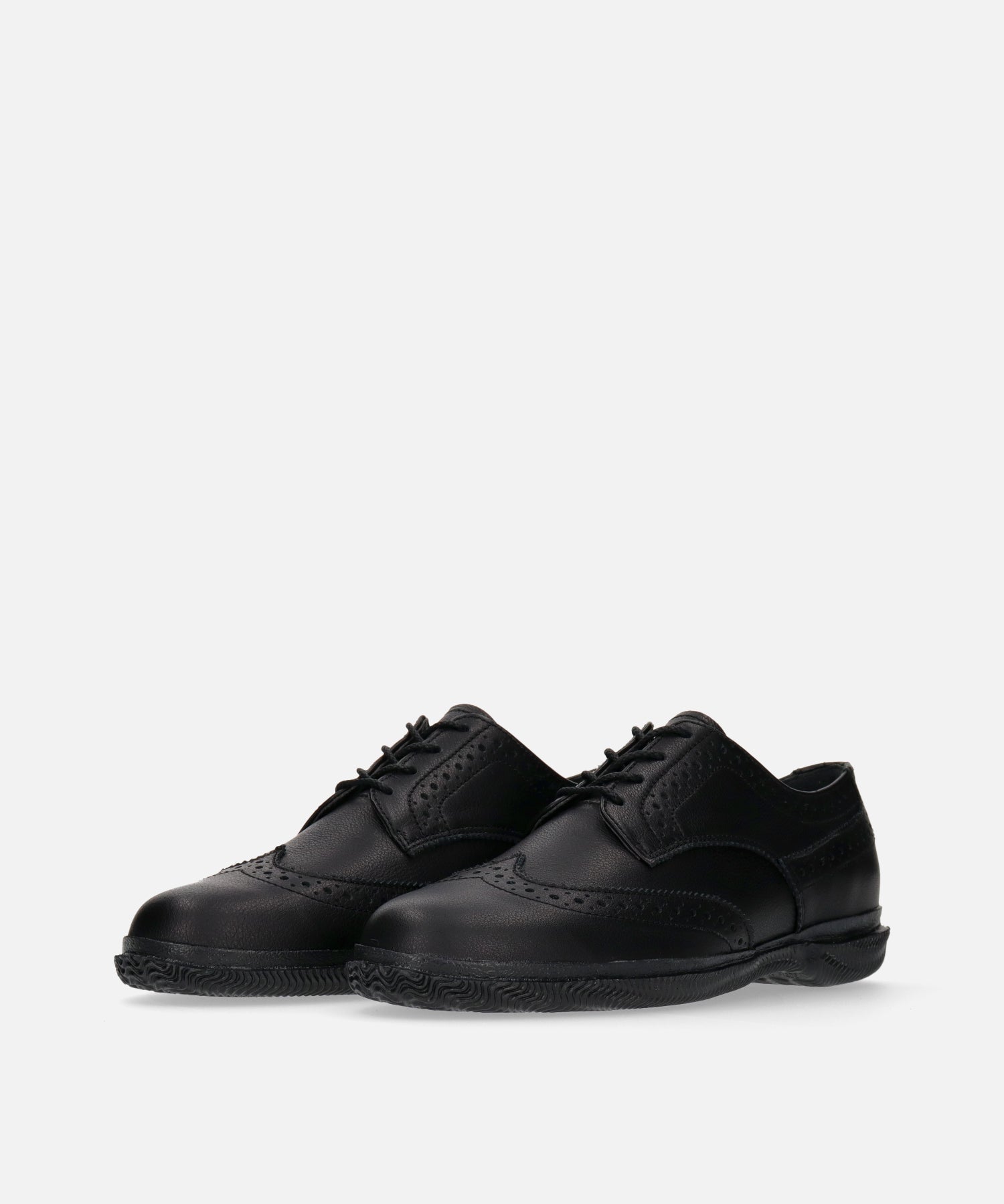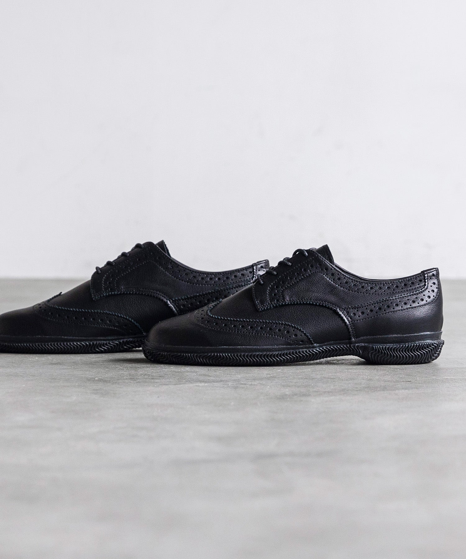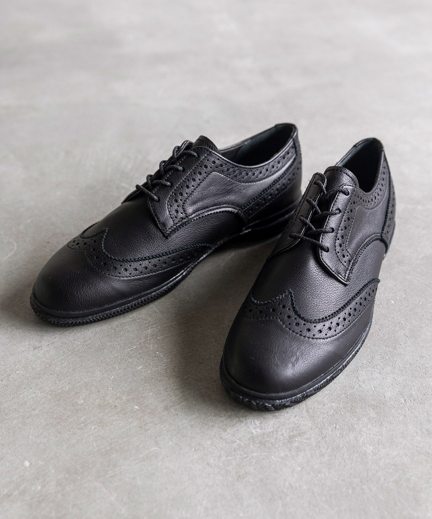 ウイングチップが大人の雰囲気を醸し出し、メダリオンやパーフォレーションが施された装飾で華やかな印象のフルブローグタイプ。シボ柄の牛レザーを採用し、カジュアル感もありオンオフ兼用で着用できるバランスのよい一足です。取り外し可能なカップインソールで清潔に保つことが可能です。