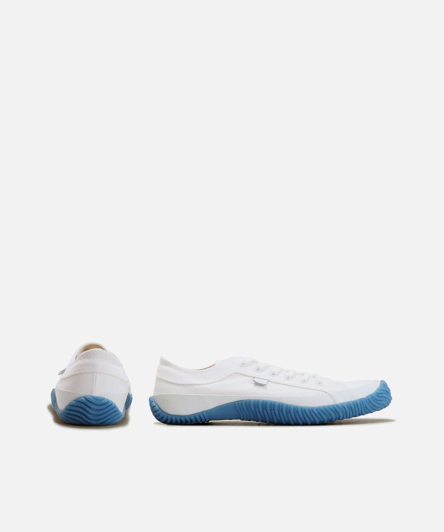 ホワイトのバイオウォッシュ加工キャンバスに、クリアソールで涼し気なアクセントをプラスしたローカット。バイオウォッシュは酵素を使った洗い加工で、8号帆布のキャンバスを柔らかく仕上げています。