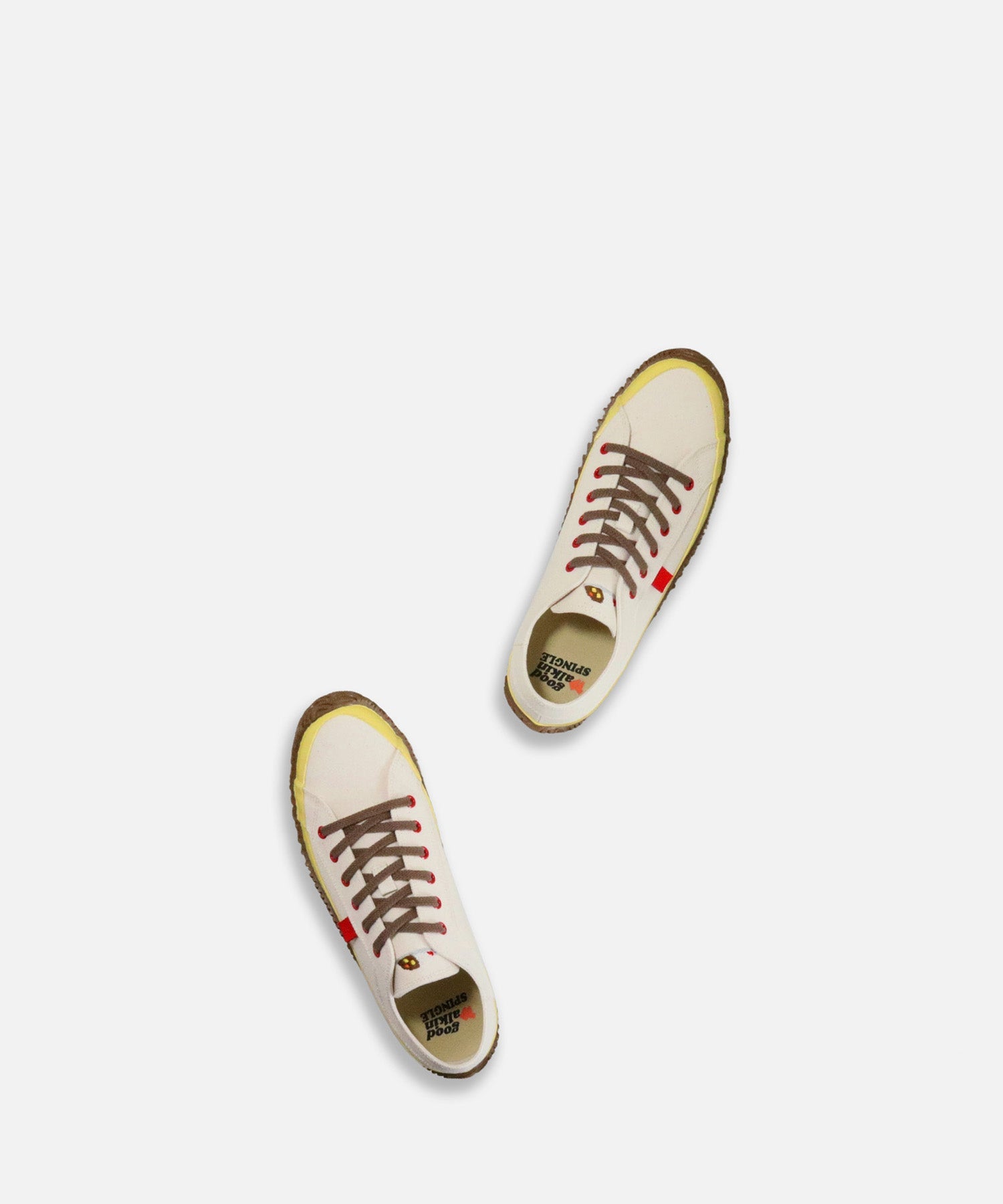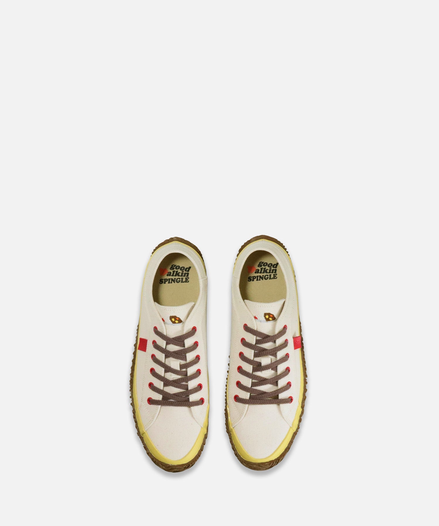 スニーカー芸人や刺繍アーティストとしても活躍する吉本芸人、グッドウォーキン上田さんとのコラボモデル。キャンバスローカットモデルSPM-141を、カレーをイメージしたカラーリングで仕上げました。ベロには上田さんオリジナルのカレーのワンポイント刺繍入り。機械刺繍の技術を駆使し、上田さんの手刺繍の風合いを忠実に再現しています。さらにインソールにはgood walkin SPINGLEのロゴが入ったスペシャル仕様。上田さんのデザイン画ステッカーが付属します。オンラインショップとSPINGLE SHOPにて100足限定での販売となります。