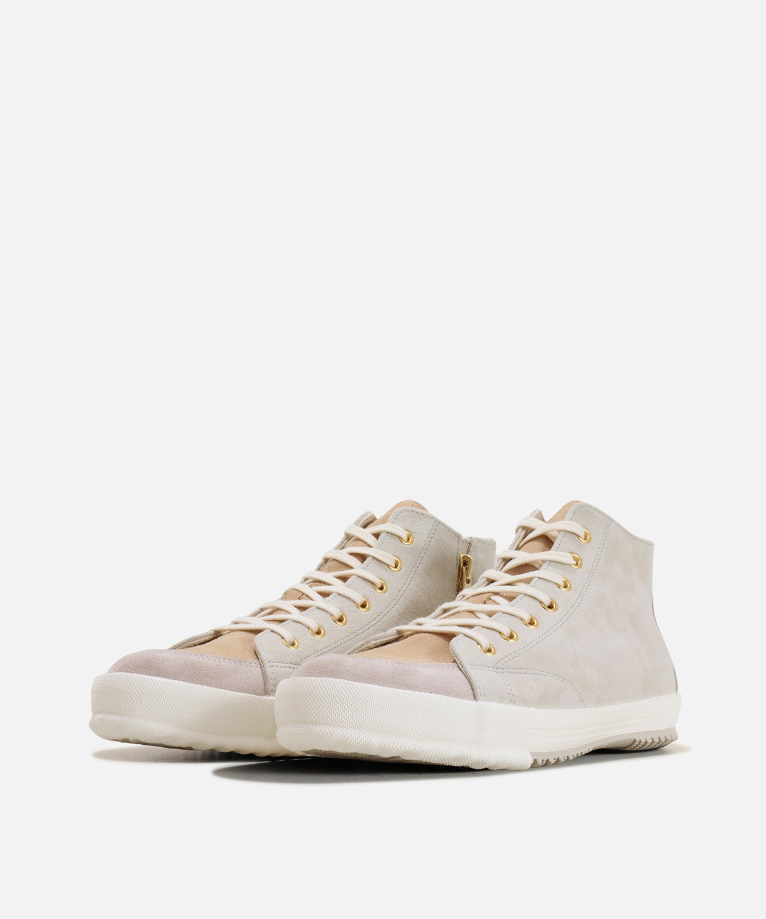 柔らかいタッチのゴート(山羊)スエードを使用し、ベージュを基調にした女性らしい配色のミドルカット。ベースは定番モデルSPM-356。ゴールドのハトメとファスナーでラグジュアリーさを演出しています。