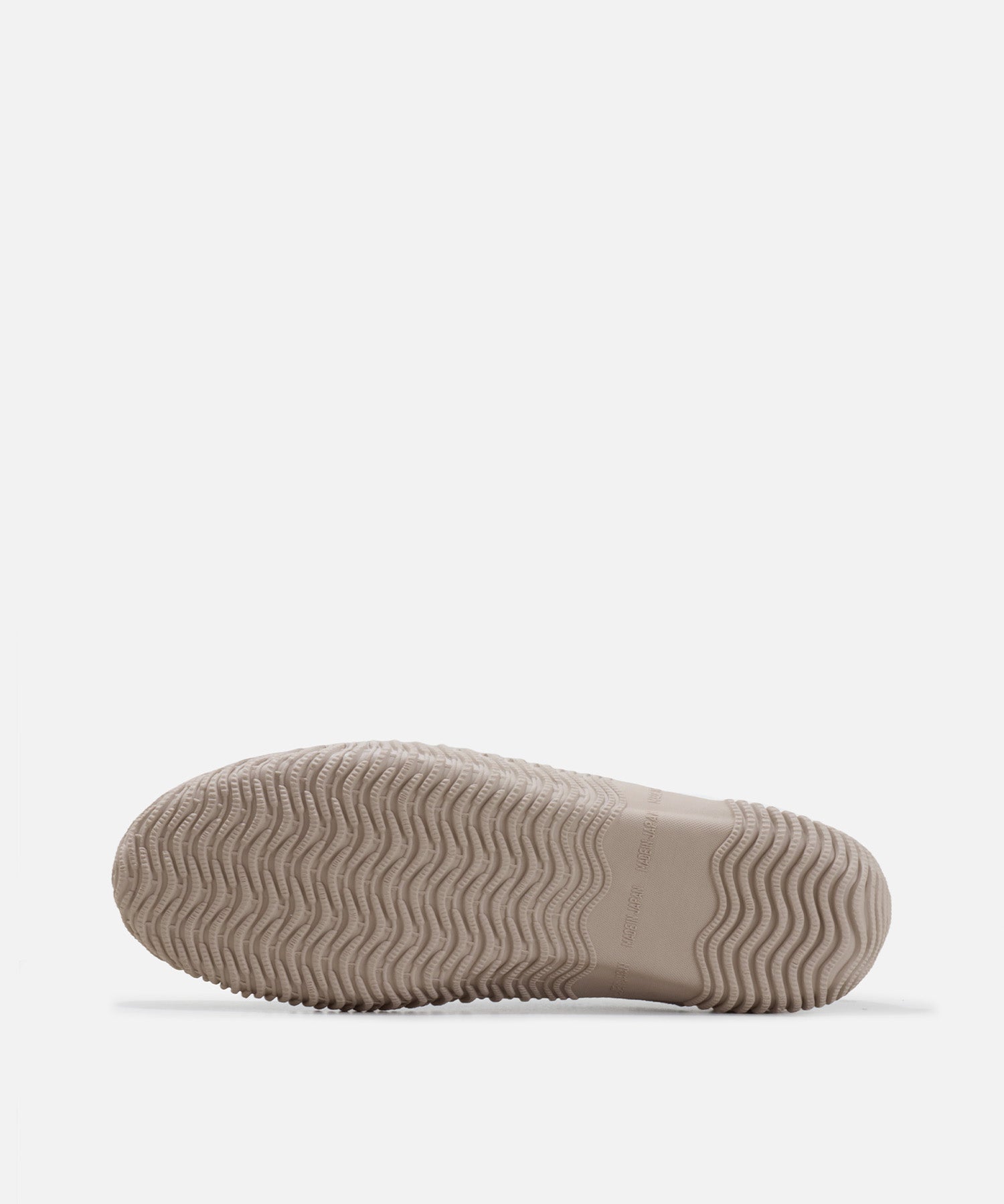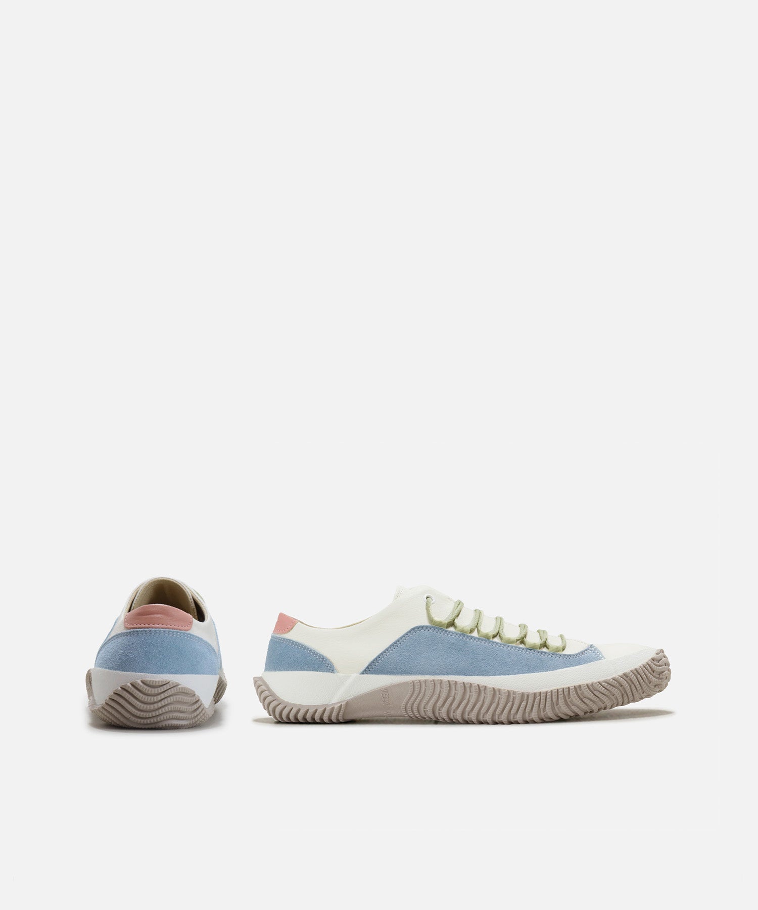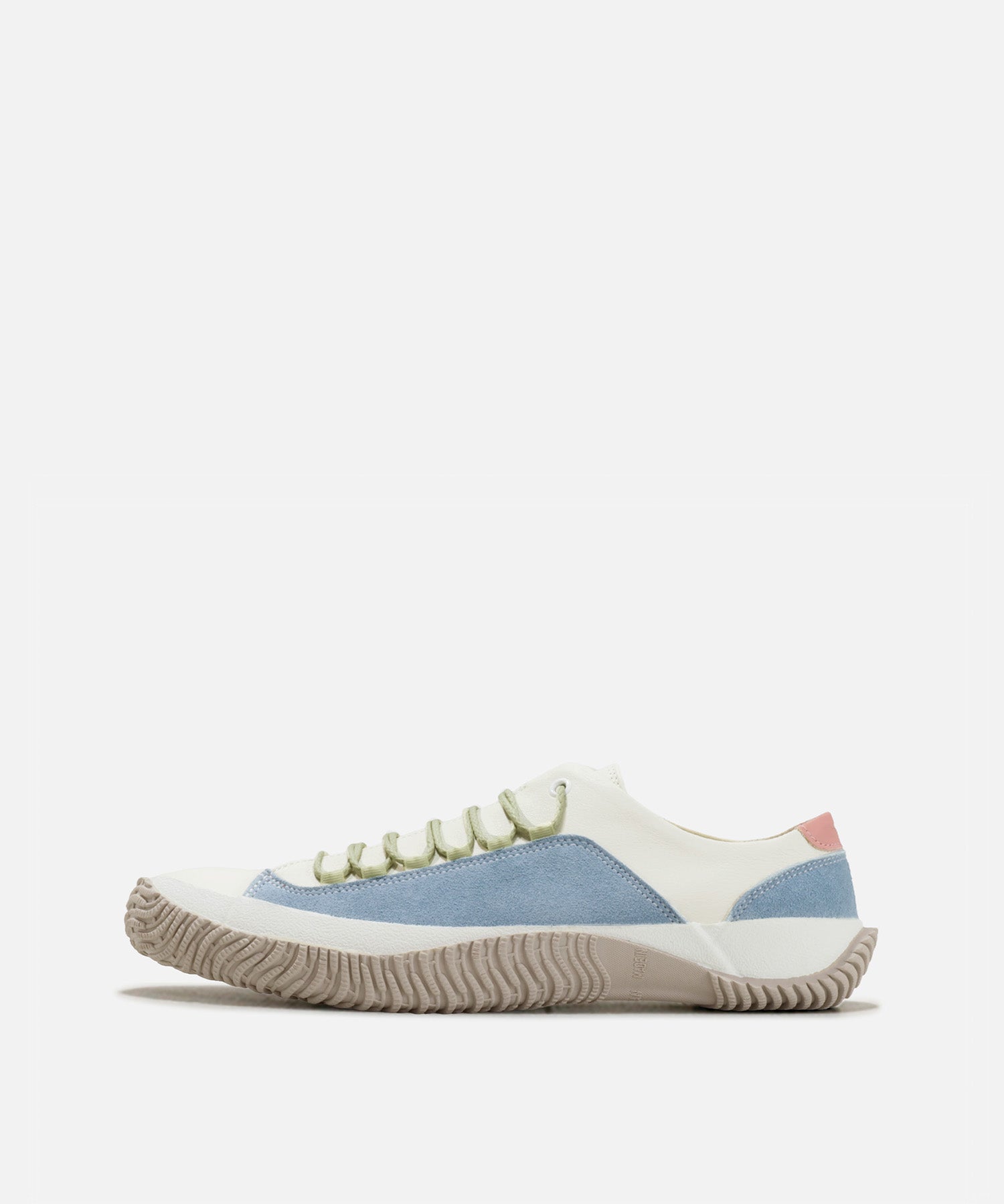 スムースレザーとベロアをコンビ使いした、アウトドアテイストなモデル。比翼仕立てのデザインを、シューレースの見せ方でスピングルらしく落とし込んでいます。ベロにはSPINGLEのロゴが型押しされています。