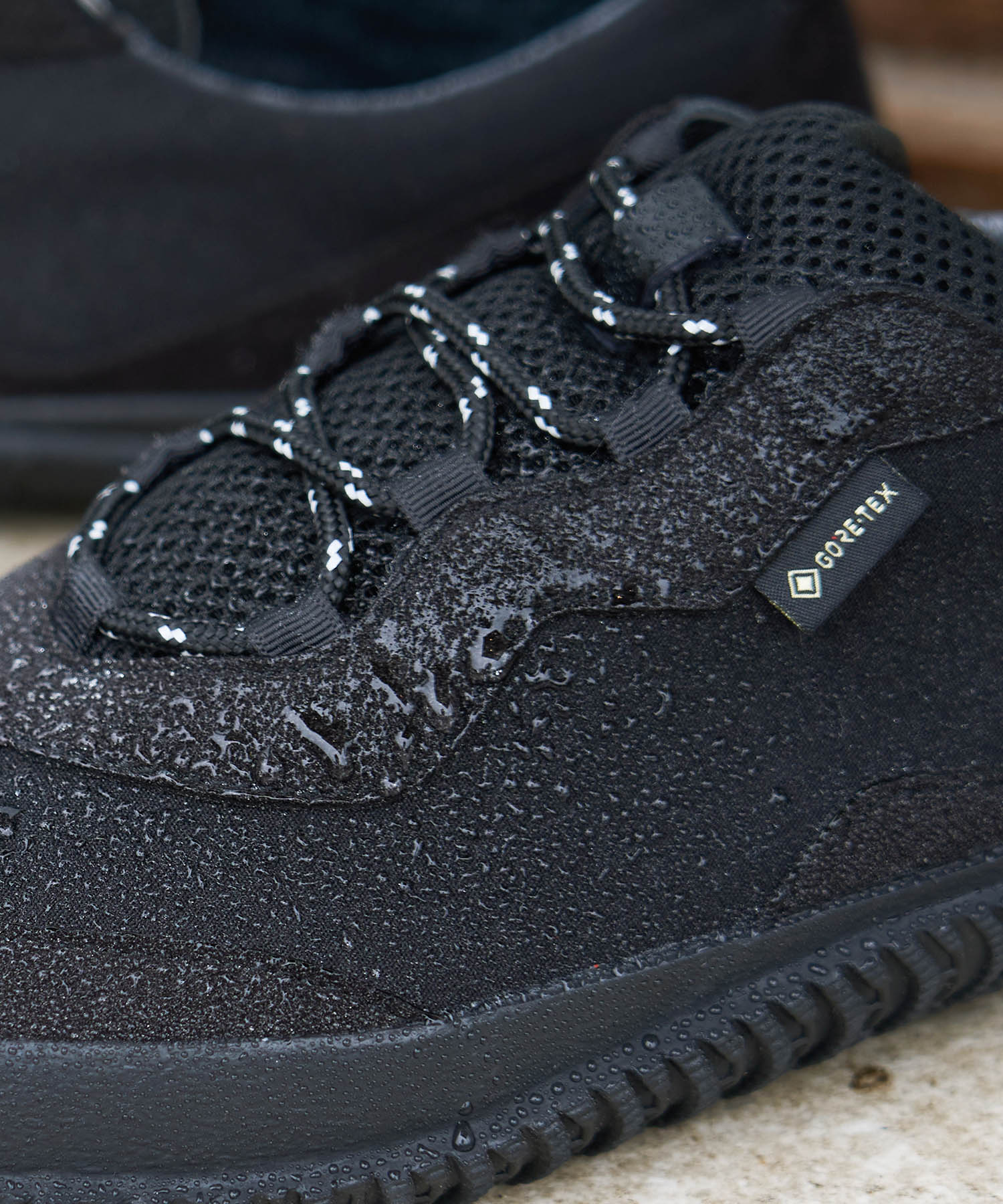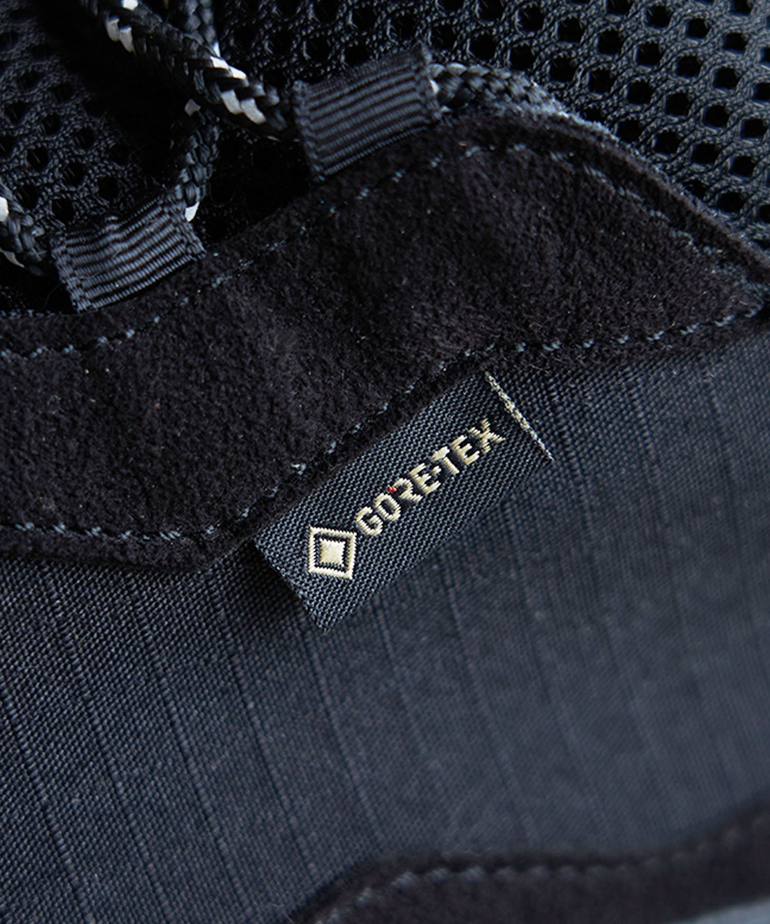 GORE-TEX、CORDURAなどの異素材を組み合わせたスポーツテイストなスニーカー。雨や水に強く、退色しにくくなっています。ピスネームにはGORE-TEXロゴが入り、リフレクター付きのシューレースがアクセントに。